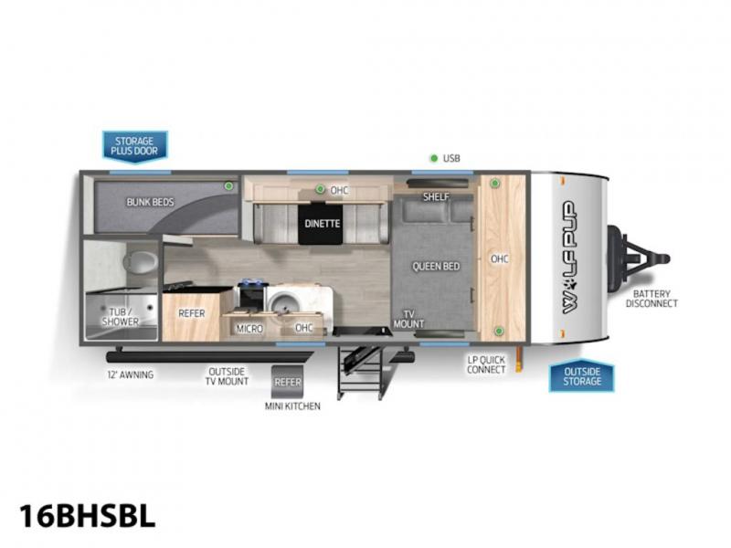 Forest River Cherokee Wolf Pup Black Label travel trailer 16BHSWBL highlights: