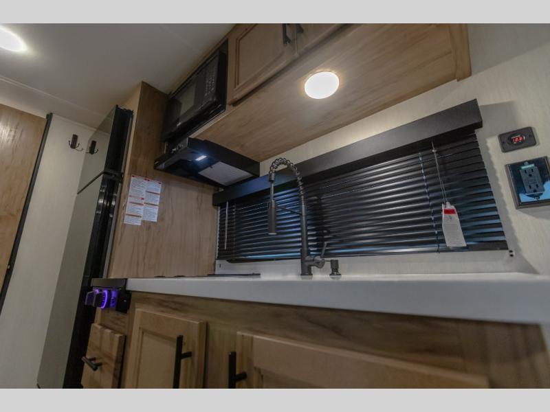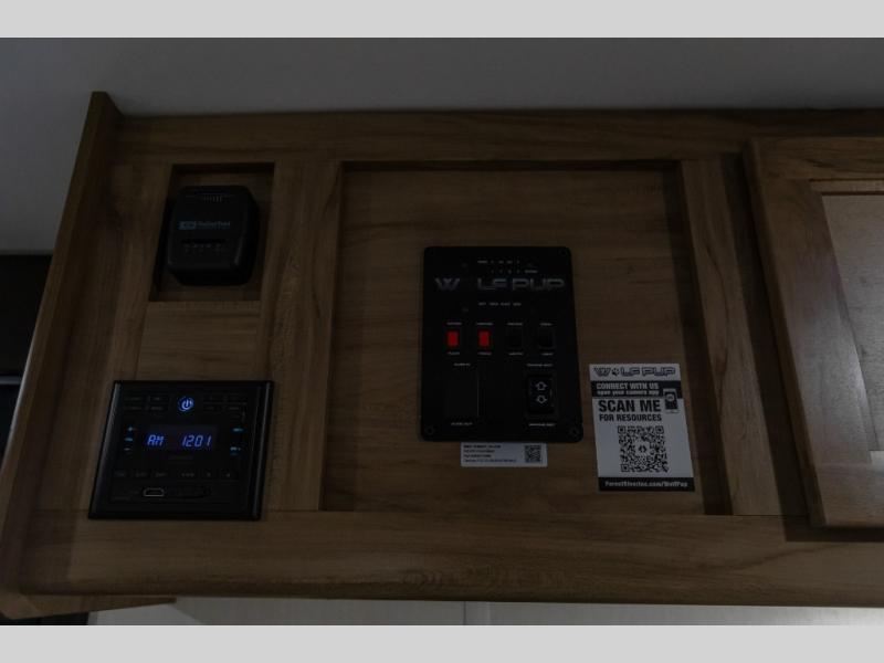 Each one of these Forest River Cherokee Wolf Pup Black Label travel trailers are lightweight and easy to tow! They are fully self contained with ample tank capacities, an abundance of storage space, and filled with at home amenities. The aerodynamic smooth radius front profile, the Power Gear frame technology, and the space saver rail design make them easier to maneuver. You will also appreciate the seamless roofing membrane with heat reflectivity to keep the sun from making your unit a hot box. The tongue and groove plywood flooring will hold up for years of fun and the USB charging stations help to keep your electronics at 100% while you're away. The Black Label Package includes a frameless window package, hung fiberglass gel coat sided walls, thermo-foil arctic insulation, and more!