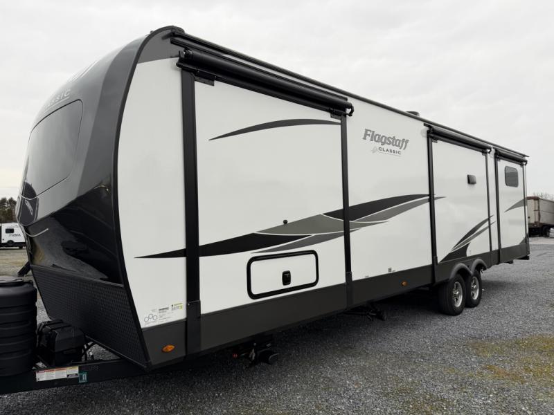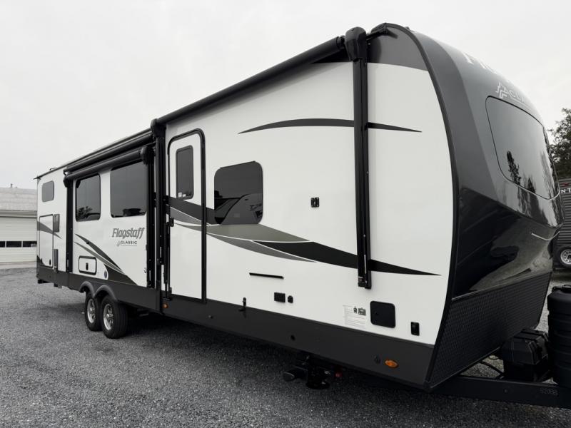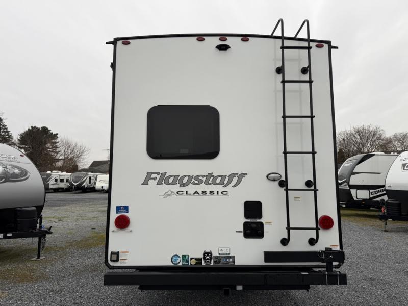 Each one of these Forest River Flagstaff Classic fifth wheels or travel trailers will be your home on wheels! Their quality craftsmanship and attention to detail shines through the enclosed underbelly, the radius roof with vaulted interior ceilings, and six-sided fully aluminum-framed floor, walls, and roof. Towing your unit will be easy with the Goodyear Endurance tires plus a tire pressure monitoring system with a monitor. The interior of each Flagstaff Classic model will have you feeling right at home with Sedonwood cabinetry, soft closing drawer slides, reading lights in the bedroom, plus many more comforts.