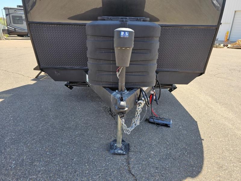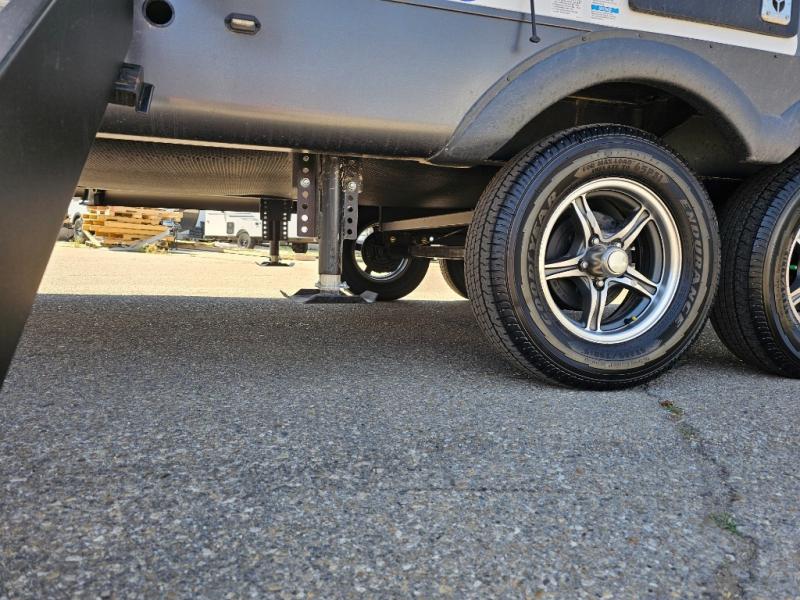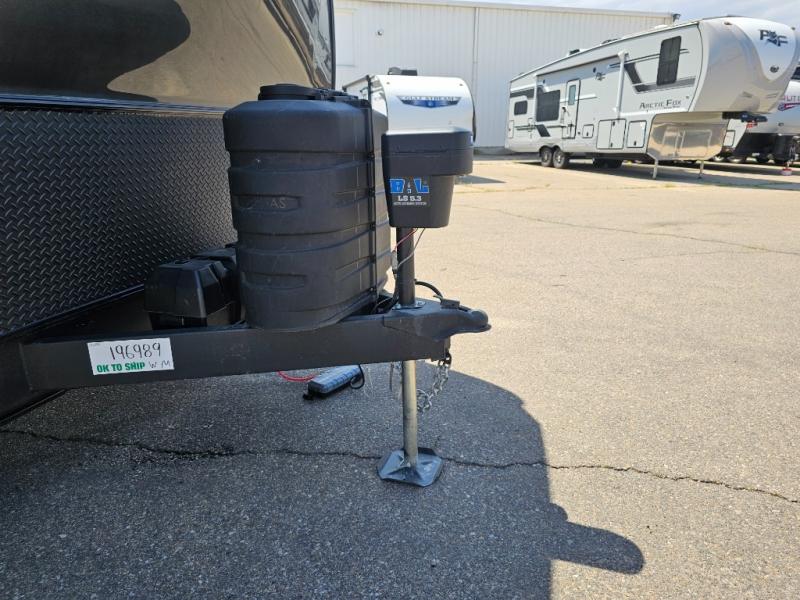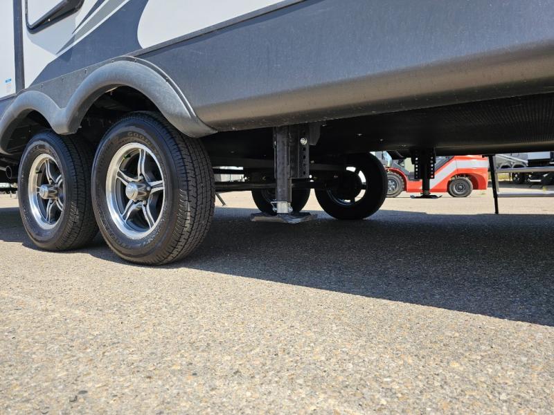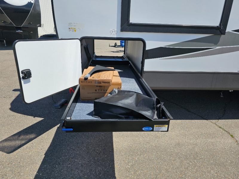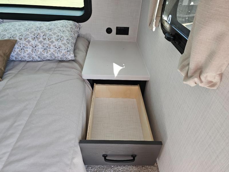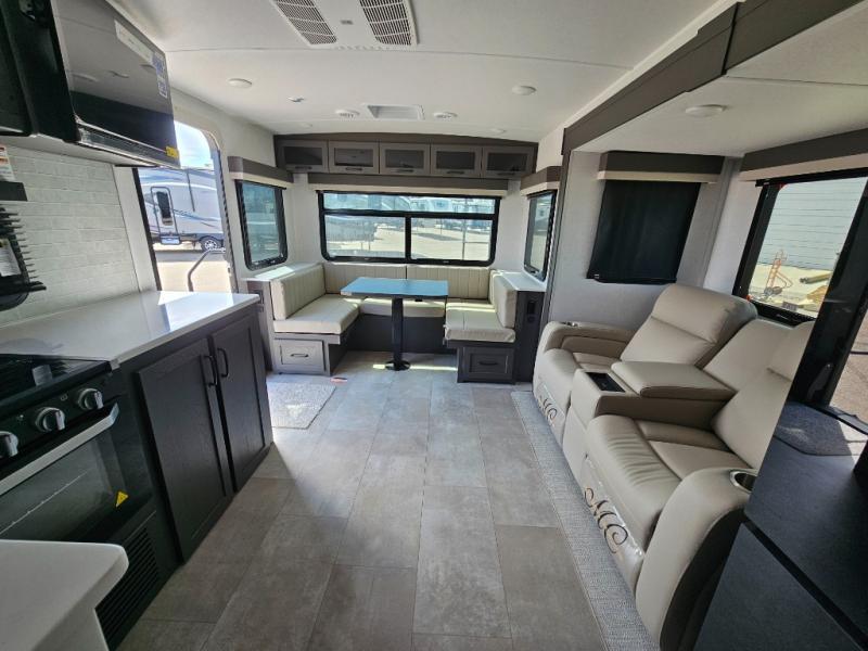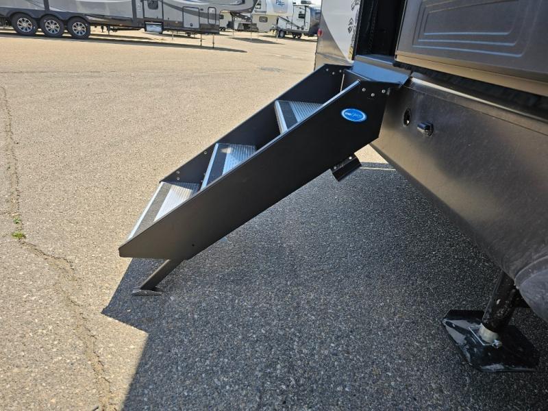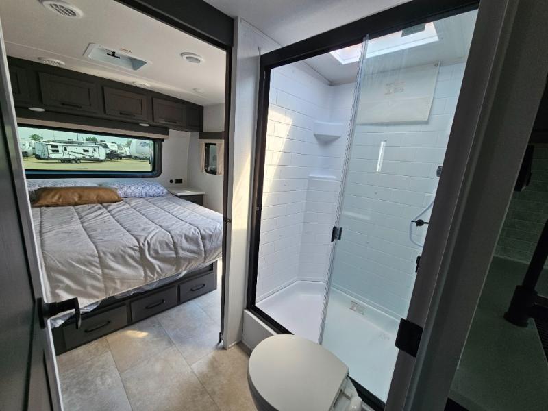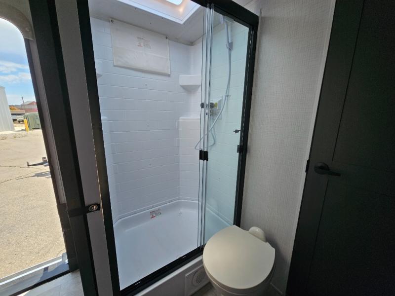 It will be so easy to enjoy time at the campground in this cozy travel trailer. The full kitchen includes a three burner gas oven, a microwave oven, and a 12V refrigerator to cook and store food, and the pantry will let you stock up on snacks. Your crew can get comfortable on the theater seat or around the rear U-shaped dinette, and there is a 12V smart entertainment TV here to make it a movie night. The walk-thru bath will let you freshen up each day, and the queen bed in the front bedroom is sure to bring comfort. You will also find one of the dual entry doors here for convenience plus a wardrobe slide out for more storage and floor space. The exterior is just as accommodating with its pass-thru storage, exterior griddle, and 21' awning!