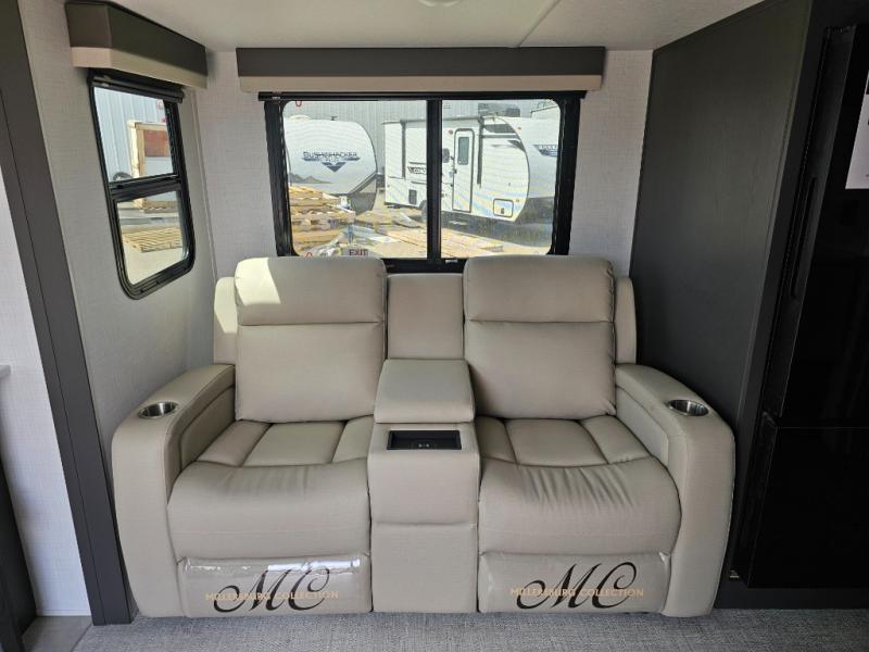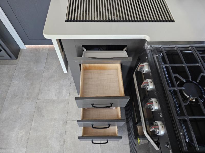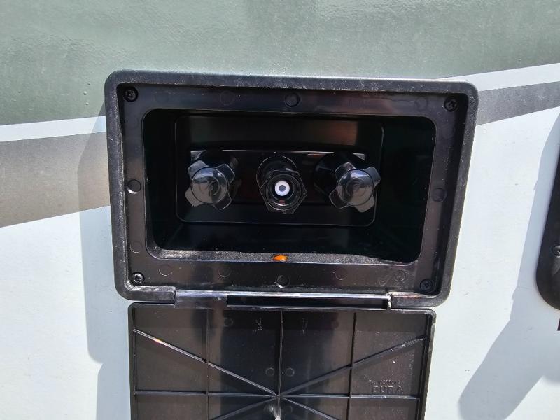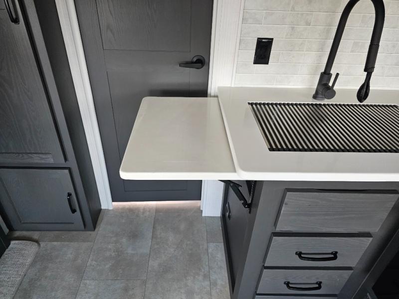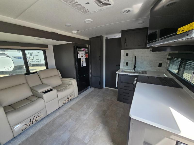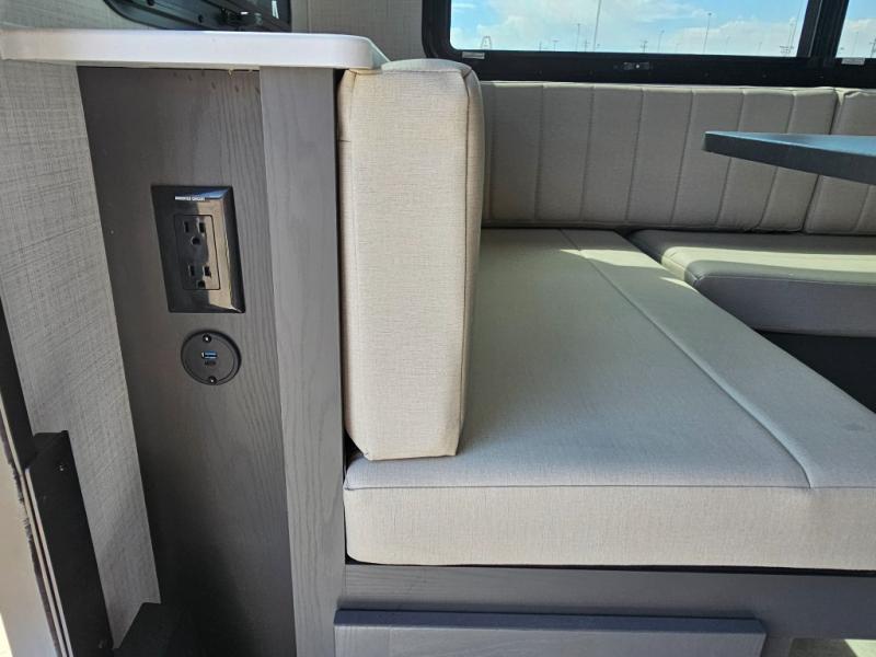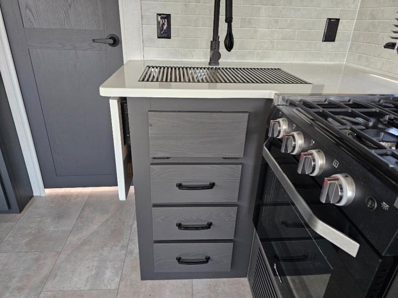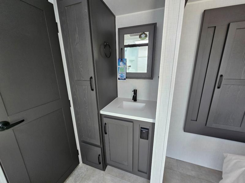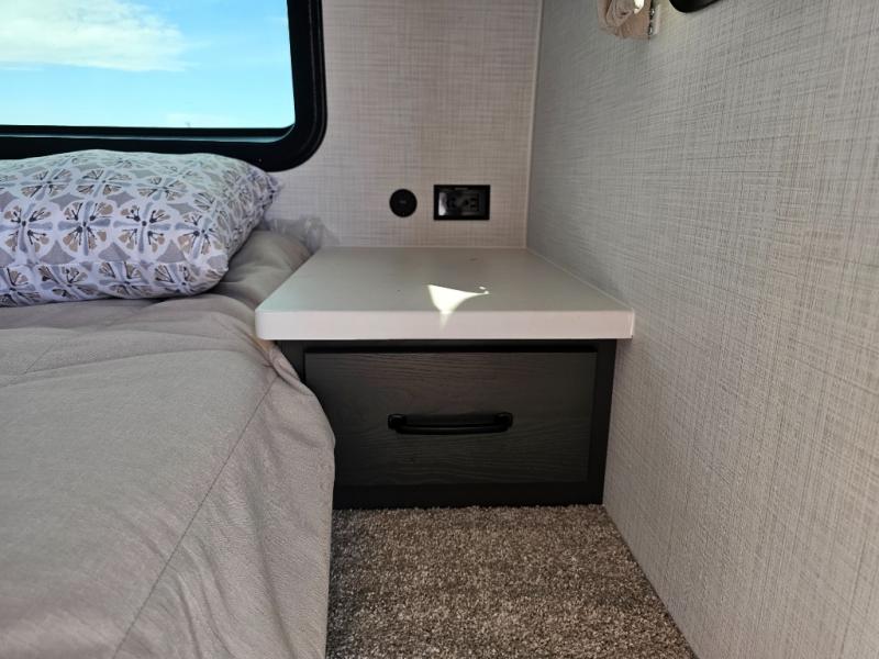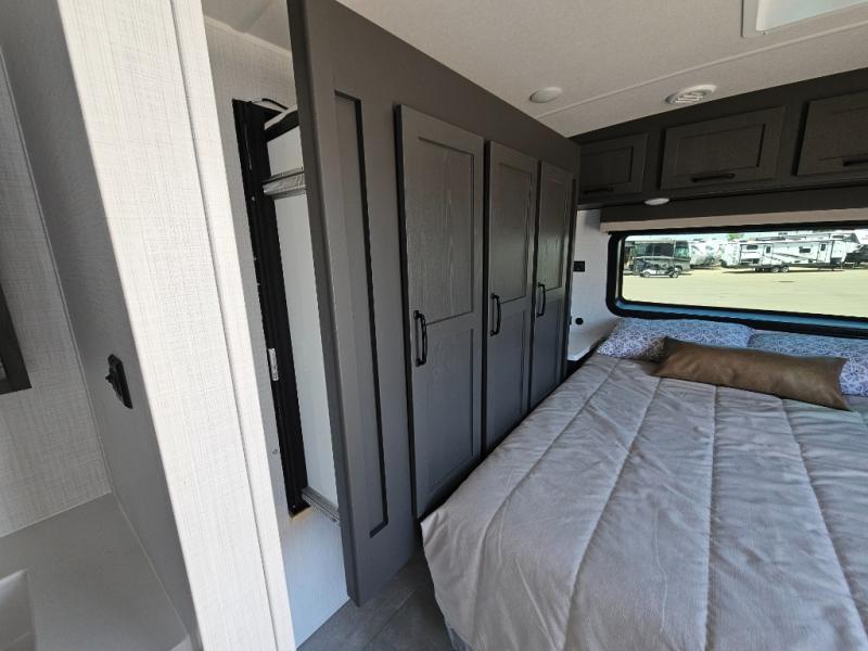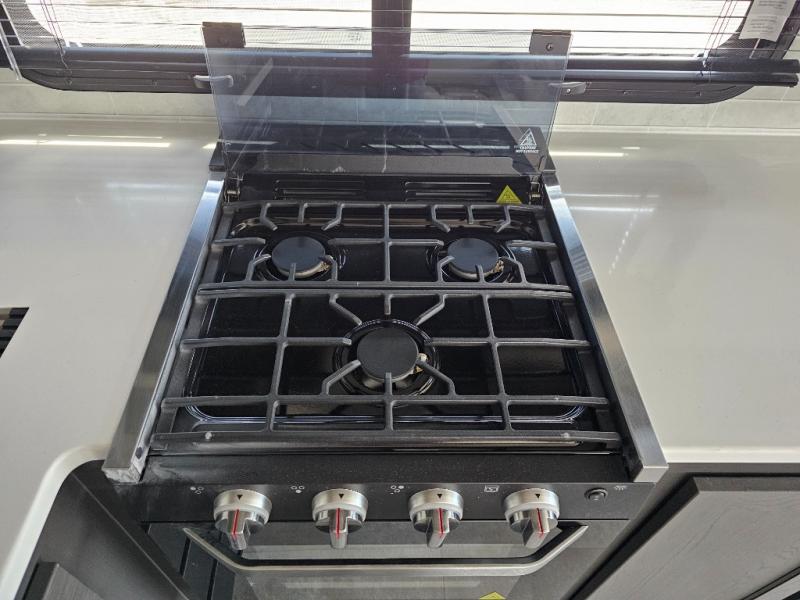 It will be so easy to enjoy time at the campground in this cozy travel trailer. The full kitchen includes a three burner gas oven, a microwave oven, and a 12V refrigerator to cook and store food, and the pantry will let you stock up on snacks. Your crew can get comfortable on the theater seat or around the rear U-shaped dinette, and there is a 12V smart entertainment TV here to make it a movie night. The walk-thru bath will let you freshen up each day, and the queen bed in the front bedroom is sure to bring comfort. You will also find one of the dual entry doors here for convenience plus a wardrobe slide out for more storage and floor space. The exterior is just as accommodating with its pass-thru storage, exterior griddle, and 21' awning!