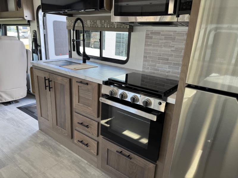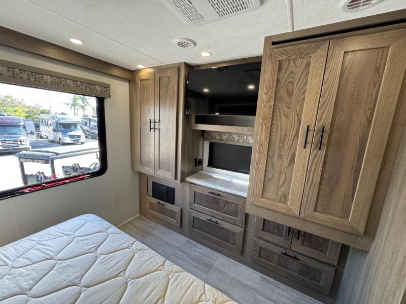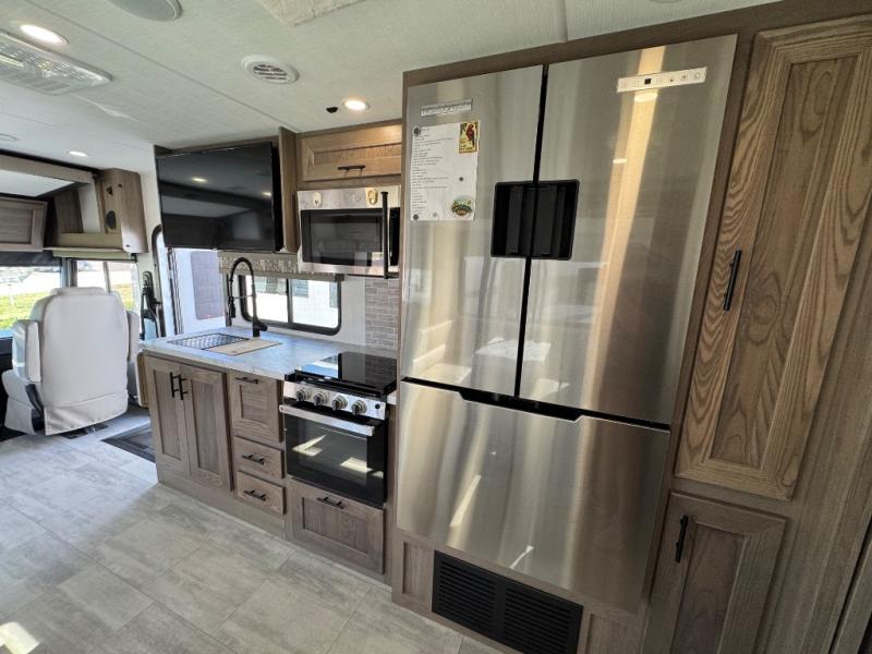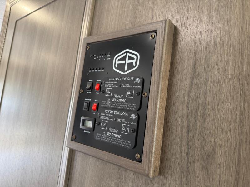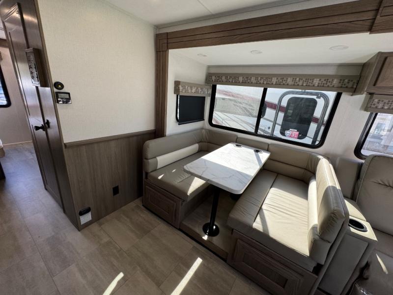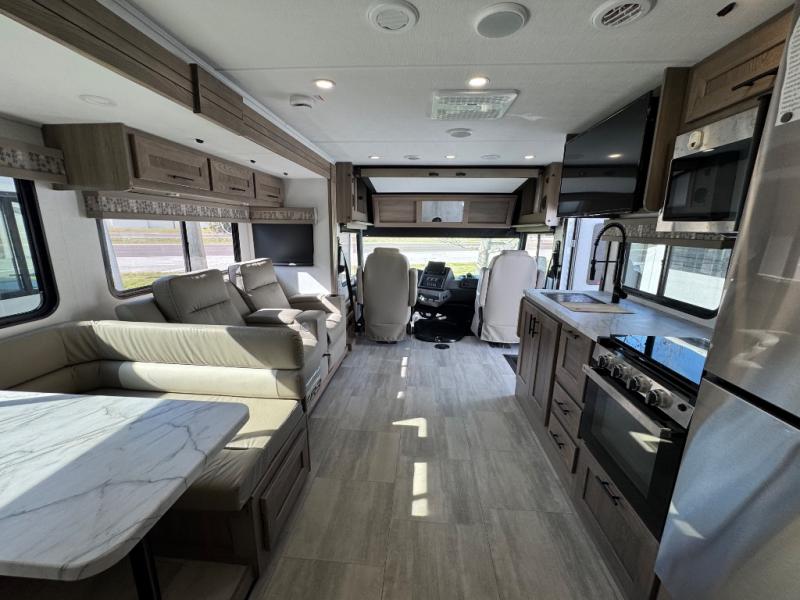 With each FR3 Class A gas motorhome by Forest River, you will find an easy-to-drive coach with a spacious interior allowing you to gather with friends and family with convenience and style found throughout! Each is built with vacuum-bonded construction, a one-piece fiberglass roof with extended rain spouts, a steel firewall and A-pillar extension, Bi-LED headlamps and lower LED fog lights, and grey Rotocast storage boxes with drains. Inside, you will enjoy black hardware, appliances, plumbing fixtures, and a glass shower door frame. You will also find a stainless steel kitchen sink with a bamboo cutting board and roll-up dryer, heavy-duty full-extension ball bearing drawer guides, dual-access dinette storage with doors, and nightstands with charging stations to keep your cellphones ready for whatever is next. Make your selection today!