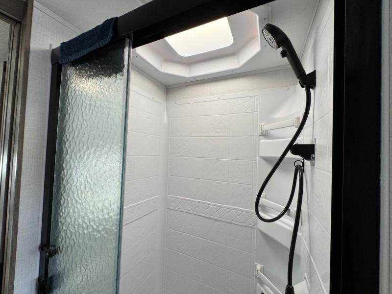 Whether you travel with your spouse, grandkids or friends, this FR3 Class A gas motorhome allows you to travel in style with plenty of additional sleeping choices from the power overhead bunk to the furniture once they are set up at night. You can dine at the wrap-around booth dinette, relax on the hide-a-bed sofa, and make full meals in the kitchen which also includes a residential microwave and countertop extension. The separated bathroom allows someone to take a shower while another freshens up with the private sink and toilet, or maybe you decide to close this area off within the bedroom. Every night you can sleep like a king while watching the 32" LED 12V TV in the bedroom, and maybe you decided to add the washer/dryer option to keep everything clean while on the road.