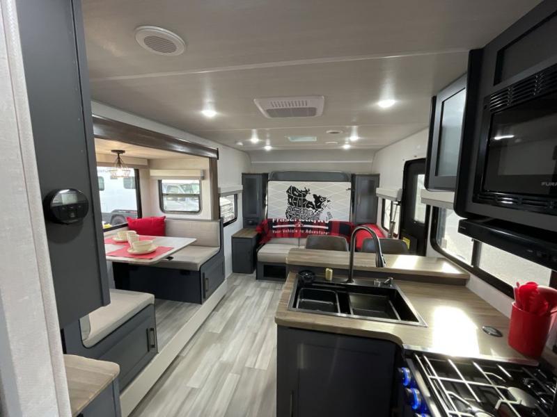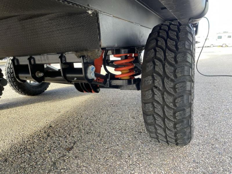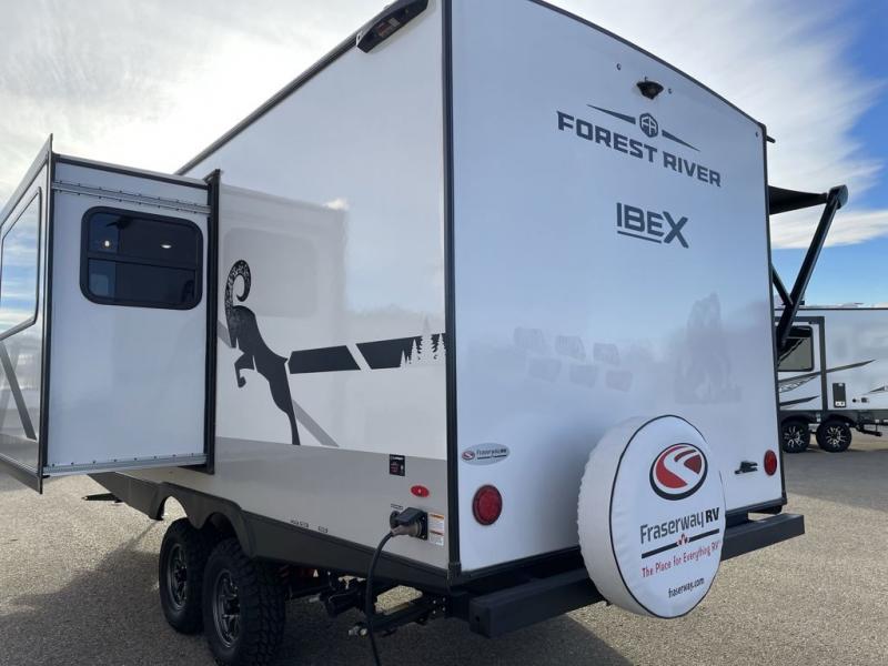 With any IBEX travel trailer or toy hauler by Forest River, you will find a fully enclosed underbelly with radiant foil for added insulation and a Cold Weather Package with 12V heated tank pads to help extend your camping season. There are also laminated walls with aluminum construction and Azdel composite substrate and a TPMS system with a wireless display so you can easily keep an eye on your tire pressure levels. The mandatory XLT Package also comes with a rugged tire and wheel package, solid surface entry steps, and a solar package with a 200W solar panel, 20A charge controller, and 2000W inverter prep. For those who wish to go further off-road, the optional Beast Mode Package can be added that features an independent suspension, 400 watts of solar power, and more!
