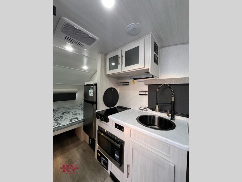 This travel trailer by Forest River is perfect for your weekend getaways. You can easily sleep three people with a rear queen bed and the front dinette folded down for the little ones. This unit also includes a 12V TV to enjoy while you're stuck inside on a rainy day. You will also find a convenient wet bath where you can easily get ready for your day of fun and adventure! This model also includes the Hood River Edition that comes with Mud Legend all terrain tires with TPMS, a MaxxAir vent cover, and 12V tank heaters!