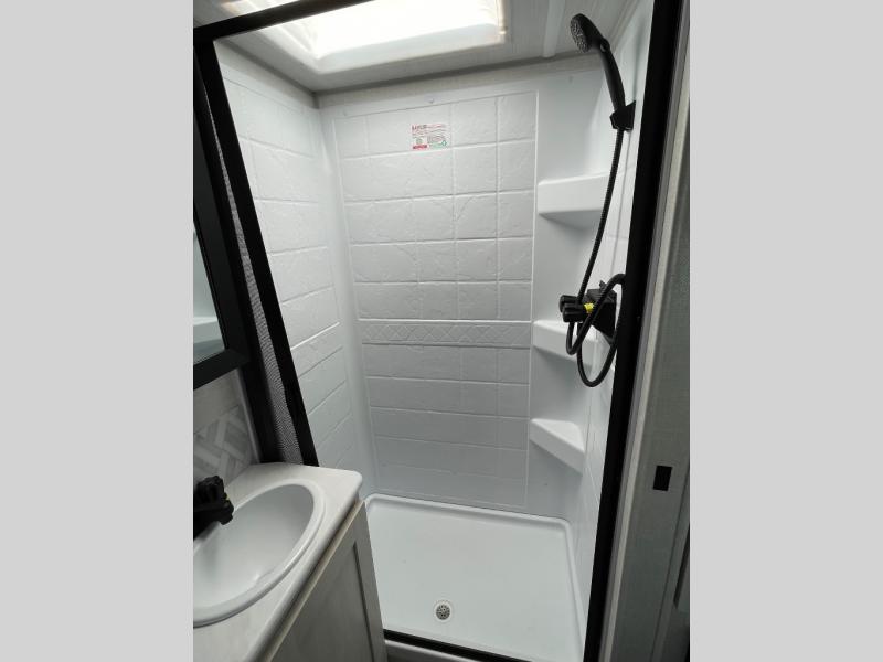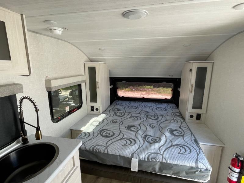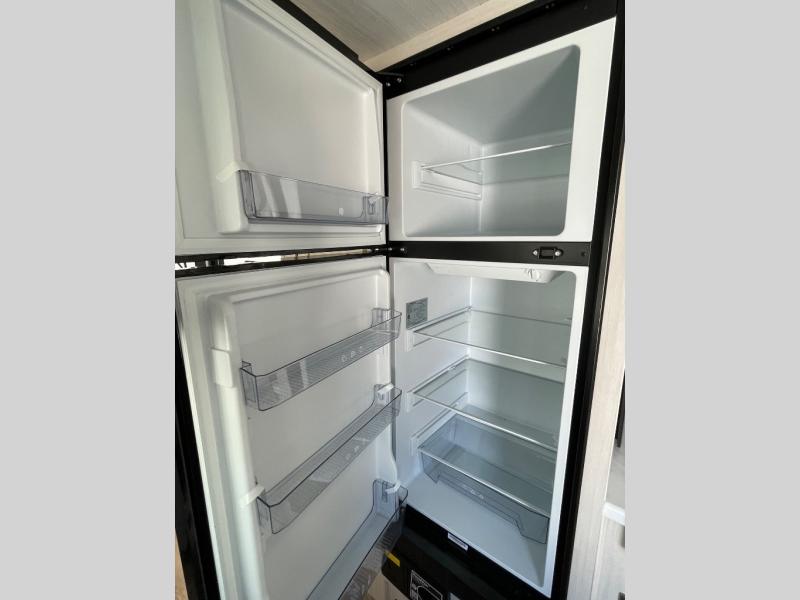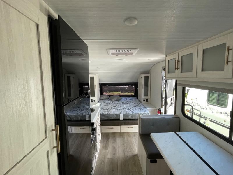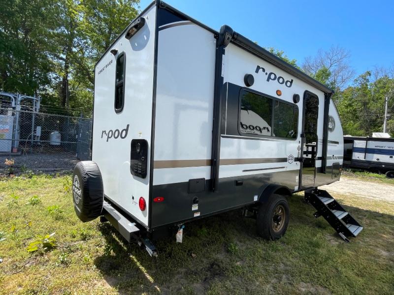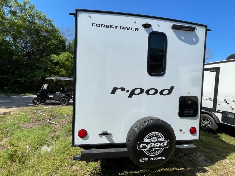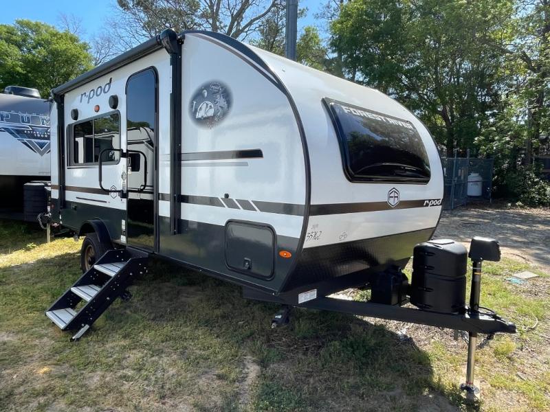 With any R-Pod travel trailer by Forest River, you will enjoy affordable luxury at the lowest tow weight in its class! There is a sealed underbelly with forced heat, a curved dual-pane acrylic front window with a bug screen and night shade, plus a large roof mounted solar panel for off-grid capabilities. The 15K A/C unit will keep you comfortable during the summer camping months, and the tankless water heater will provide endless hot showers after hiking, biking, swimming and more! Each model also includes a black glass friction hinge entrance door, roof ladder prep, exterior motion lighting, plus a hot and cold exterior spray port to wash off sand from the beach. Inside, you'll enjoy seamless Surf-X kitchen countertops, blackout roller shades, and a central vacuum system for hassle-free cleaning!