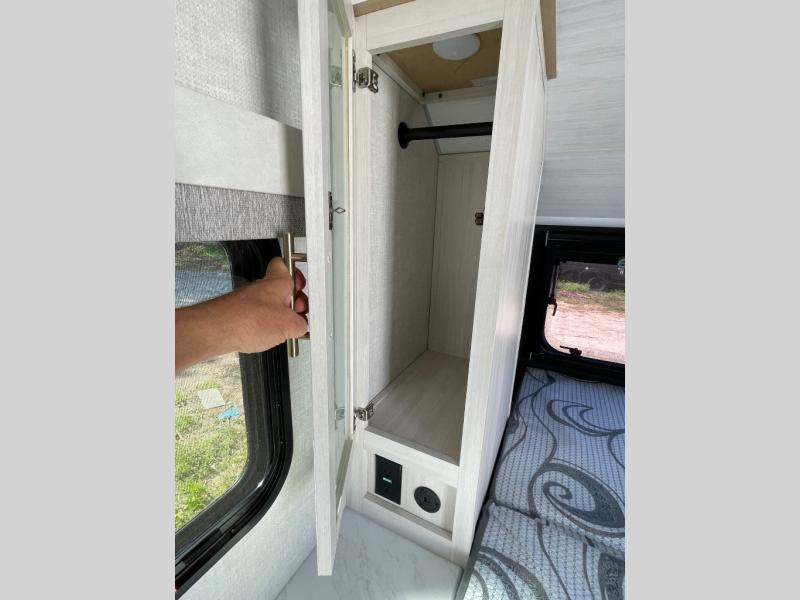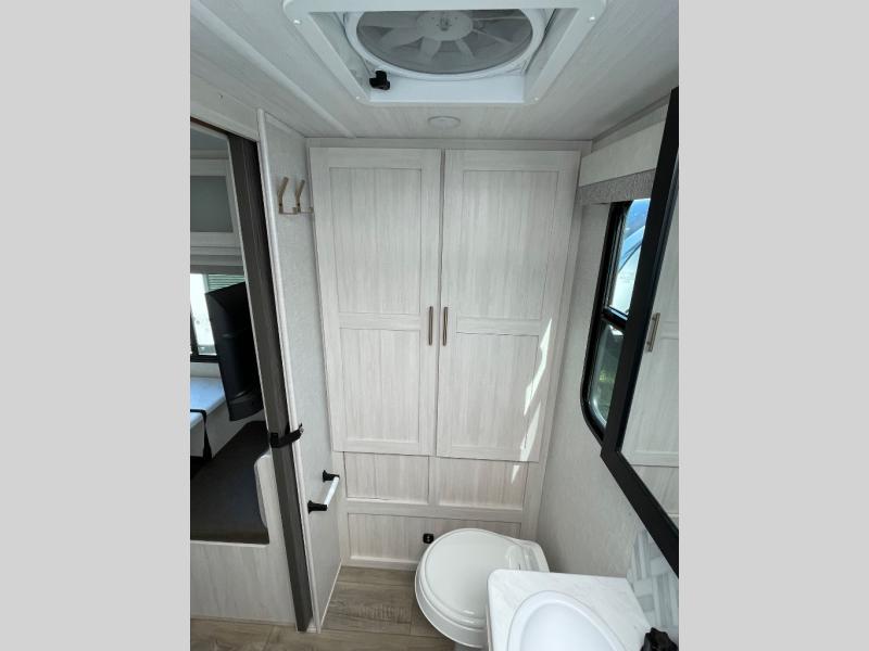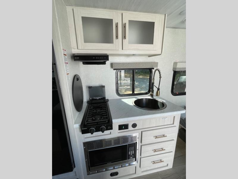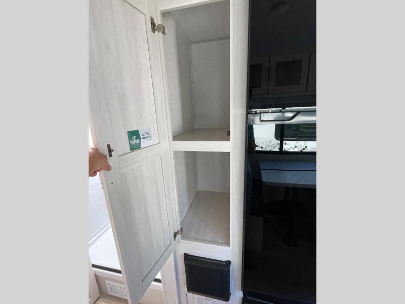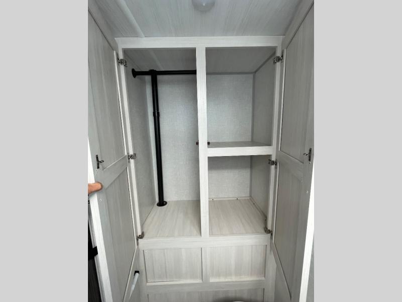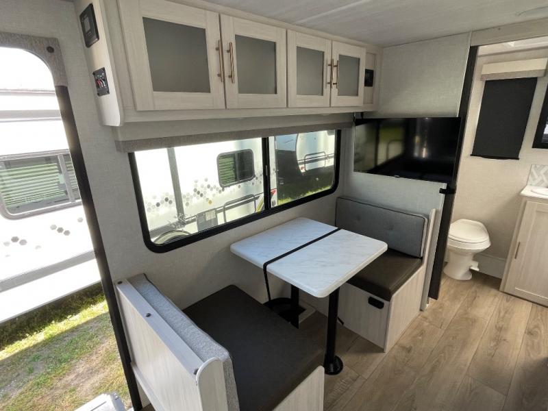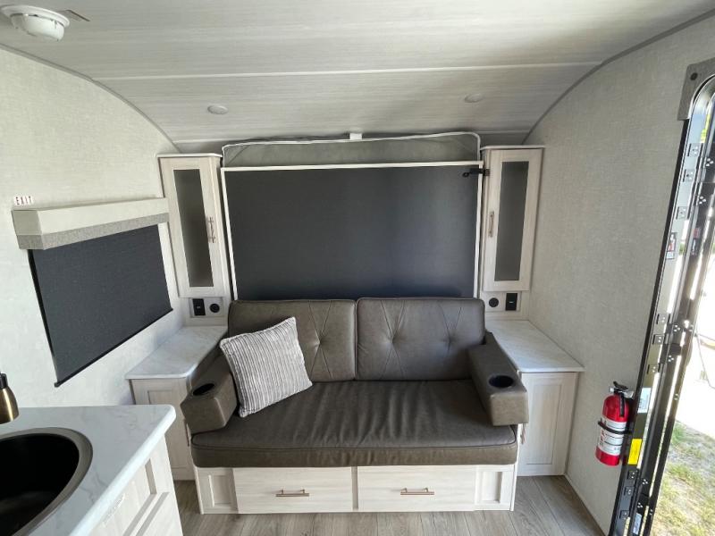 You're going to love all of the conveniences and versatility of this travel trailer! The front Murphy bed can fold away to reveal a sofa which gives you a comfortable place to sit during the day and to sleep at night too. The rear full bath features everything you will need to get squeaky clean each morning, as well as a large wardrobe for you to store your linens. After you have whipped up your best meal with the two-burner cooktop or convection microwave, you can head to the booth dinette and enjoy eating it there comfortably.