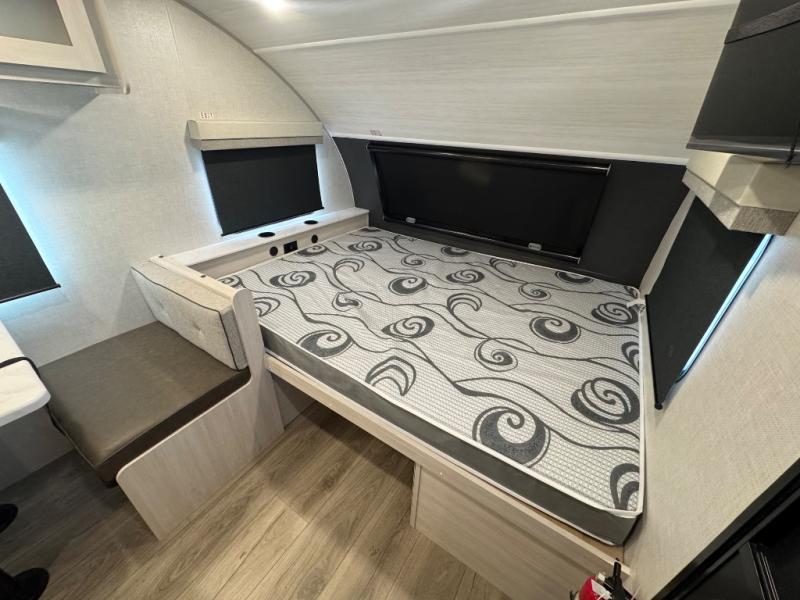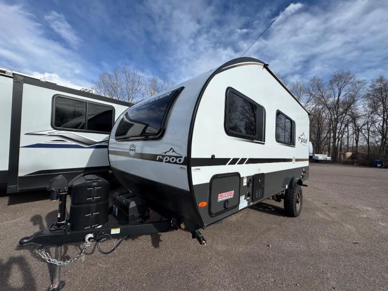 With any R-Pod travel trailer by Forest River, you will enjoy affordable luxury at the lowest tow weight in its class! There is a sealed underbelly with forced heat, a curved dual-pane acrylic front window with a bug screen and night shade, plus a large roof mounted solar panel for off-grid capabilities. The 15K A/C unit will keep you comfortable during the summer camping months, and the tankless water heater will provide endless hot showers after hiking, biking, swimming and more! Each model also includes a black glass friction hinge entrance door, roof ladder prep, exterior motion lighting, plus a hot and cold exterior spray port to wash off sand from the beach. Inside, you'll enjoy seamless Surf-X kitchen countertops, blackout roller shades, and a central vacuum system for hassle-free cleaning!