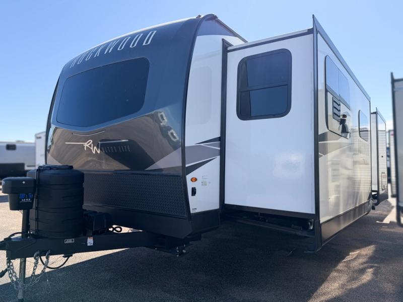 Each Rockwood Ultra Lite travel trailer by Forest River includes superior construction with a high gloss front cap, laminated white fiberglass sidewalls, and tinted frameless windows for a sleek look. The torsion axle, Rubber-Ryde suspension will make towing smooth and hassle-free, along with the nitrogen filled, Goodyear Endurance tires and the tire pressure monitor system. Interior comforts include designer kitchen backsplash, solid wood cabinet doors with hidden hinges, and night roller shades to name a few. Choose a Rockwood Ultra Lite travel trailer today!