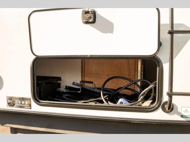 With any Rockwood GEO Pro travel trailer by Forest River you will enjoy easy towing, durable construction, and off-road capabilities with larger 15" tires and a lift kit! Each model is constructed with complete composite wall construction for added strength and durability, and the torsion axle, Rubber-Ryde suspension will make towing easier than ever. Inside, you'll find sleek roller shades for added privacy, a 12V refrigerator and a microwave, plus a 20,000 BTU furnace to keep you warm during the colder camping months.