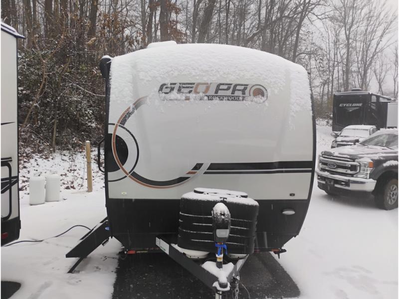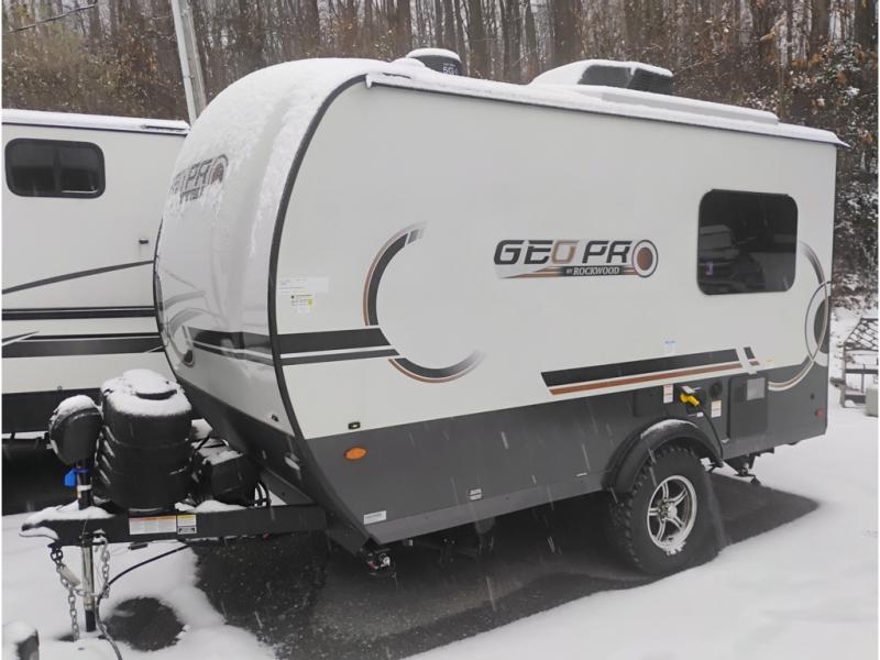 With any Rockwood GEO Pro travel trailer by Forest River you will enjoy easy towing, durable construction, and off-road capabilities with larger 15" tires and a lift kit! Each model is constructed with complete composite wall construction for added strength and durability, and the torsion axle, Rubber-Ryde suspension will make towing easier than ever. Inside, you'll find sleek roller shades for added privacy, a 12V refrigerator and a microwave, plus a 20,000 BTU furnace to keep you warm during the colder camping months.