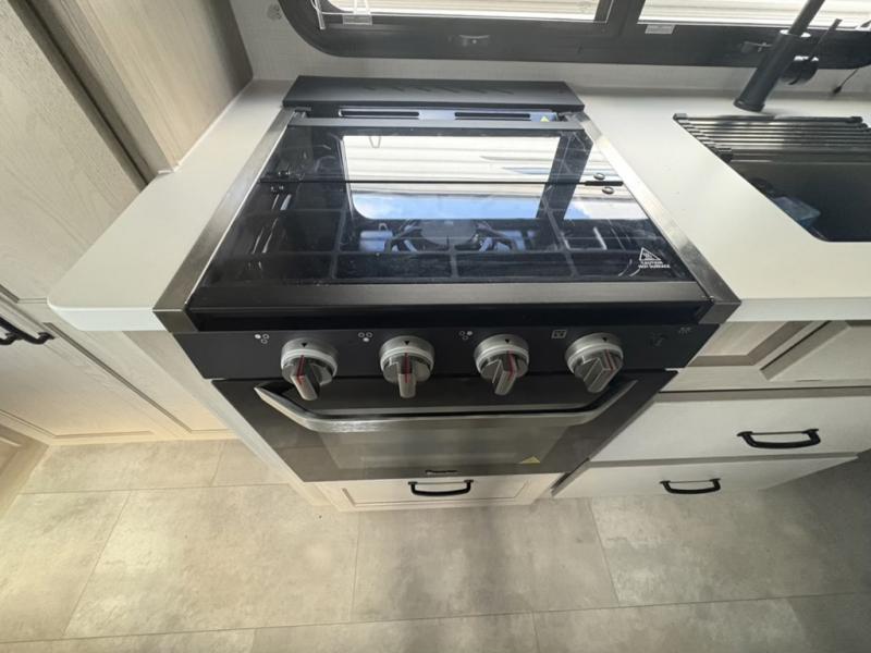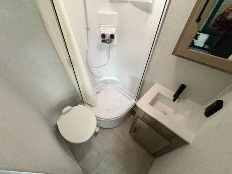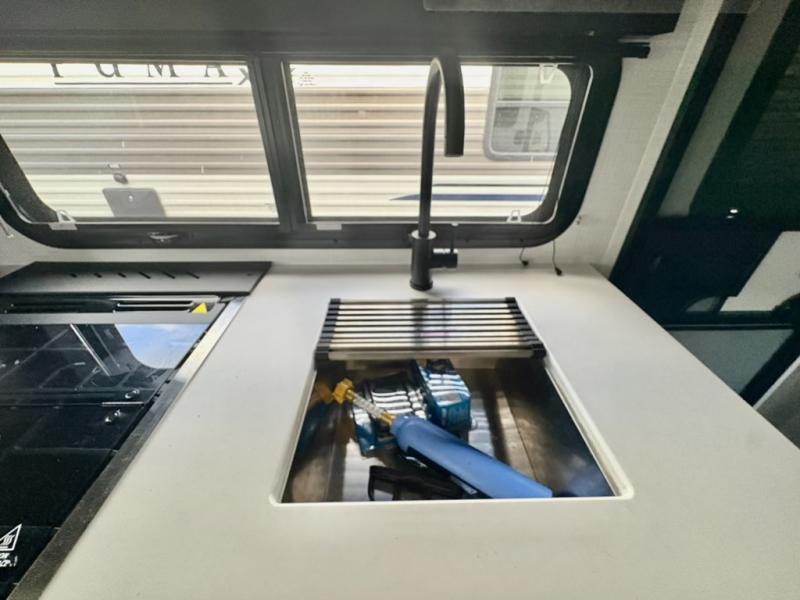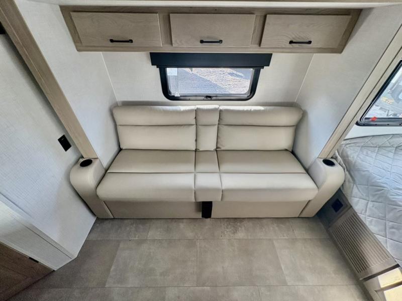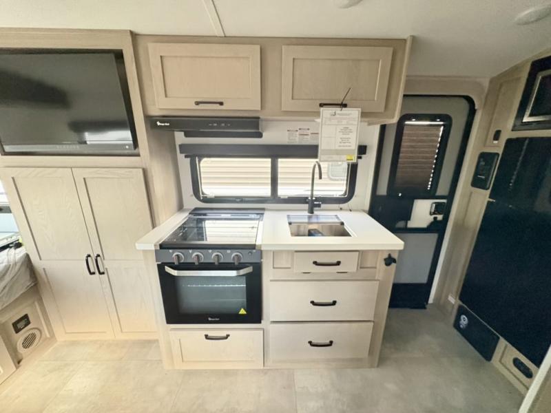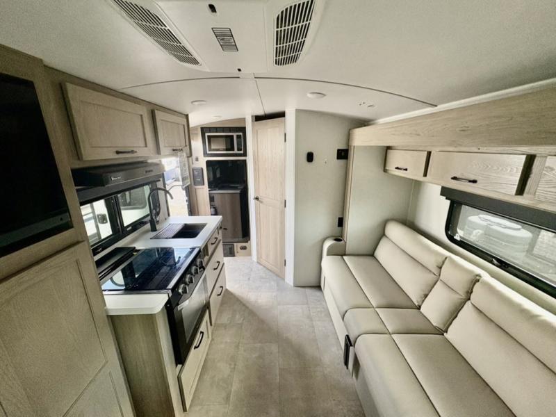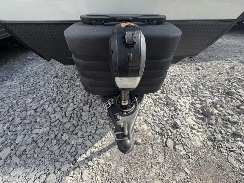 This is the perfect couple's trailer, so sneak away for a weekend in the woods. There is a 72" sofa with cupholders with a table that will be perfect for meals times and relaxing. This model includes a 32" 12V TV to keep you busy on those rainy days, and the queen bed will provide a great night's rest. This model also includes an outside griddle and an 11' power awning so you can enjoy those nice days outdoors!
