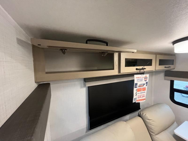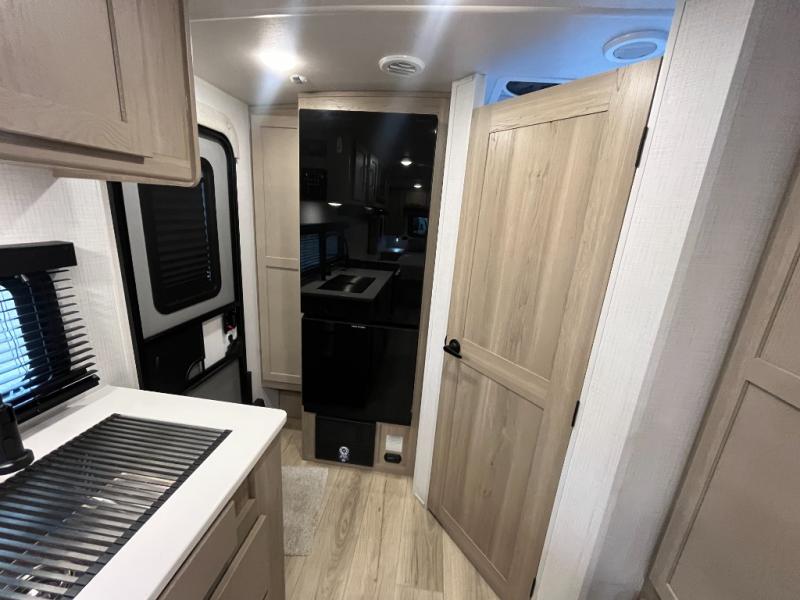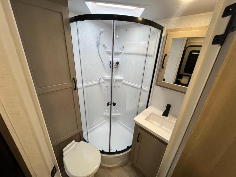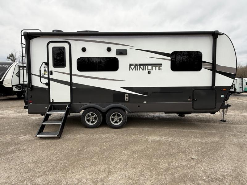 Each Rockwood Mini Lite travel trailer by Forest River is constructed with a fully laminated one-piece walkable roof, sleek frameless windows, and a six-sided full aluminum frame for strength and durability. The 12V thermostatically controlled heated tanks, plus radiant foil in the underbelly and slide out floors will allow you to camp well into the colder months, and the 200W roof solar panel will be perfect for a little off-gridding. Each model includes solid surface kitchen countertops, solid wood cabinet doors, night roller shades, plus many more interior features. Having an AIR 360+ omnidirectional antenna with WiFi prep on board gives you the option to get some work done if it's needed, and the power tongue jack provides hassle-free set up, so you can enjoy more time relaxing!