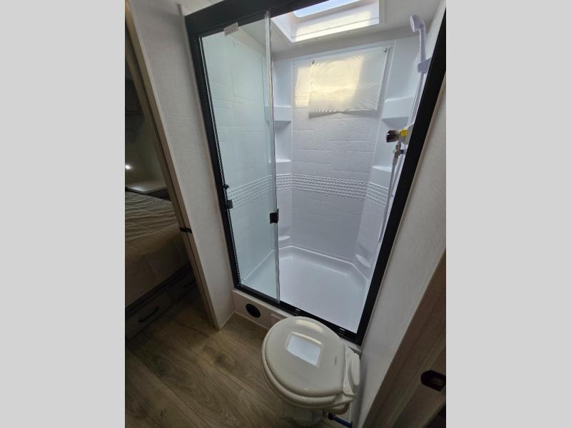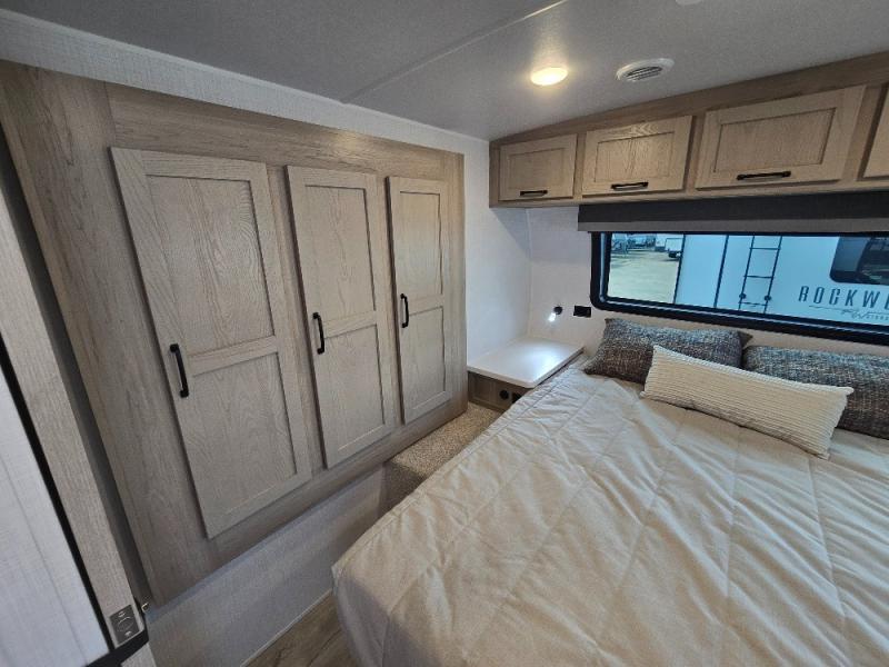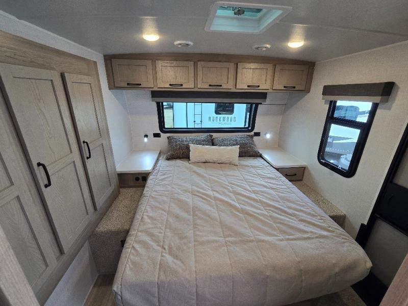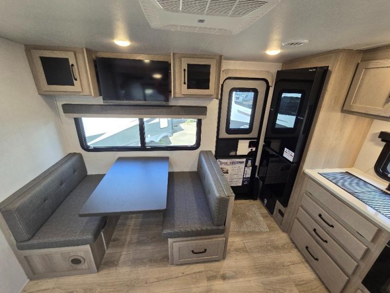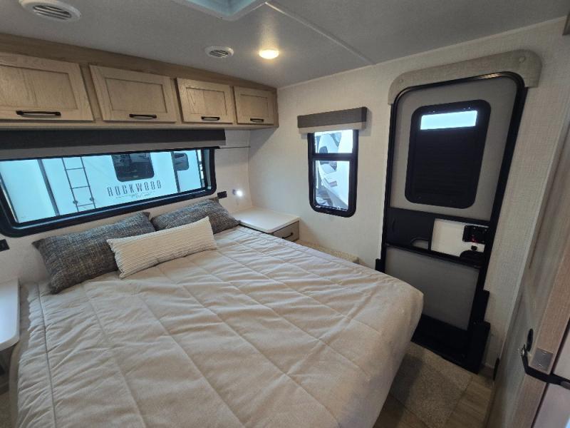 Each Rockwood Mini Lite travel trailer by Forest River is constructed with a fully laminated one-piece walkable roof, sleek frameless windows, and a six-sided full aluminum frame for strength and durability. The 12V thermostatically controlled heated tanks, plus radiant foil in the underbelly and slide out floors will allow you to camp well into the colder months, and the 200W roof solar panel will be perfect for a little off-gridding. Each model includes solid surface kitchen countertops, solid wood cabinet doors, night roller shades, plus many more interior features. Having an AIR 360+ omnidirectional antenna with WiFi prep on board gives you the option to get some work done if it's needed, and the power tongue jack provides hassle-free set up, so you can enjoy more time relaxing!