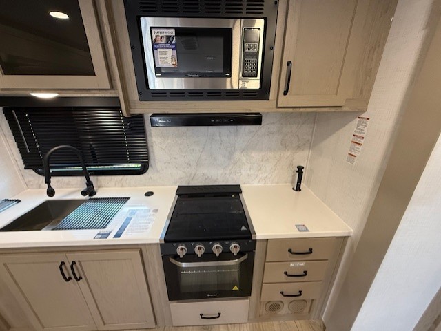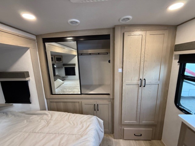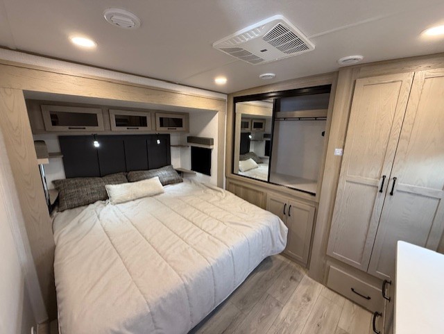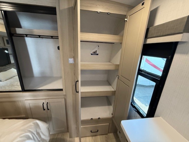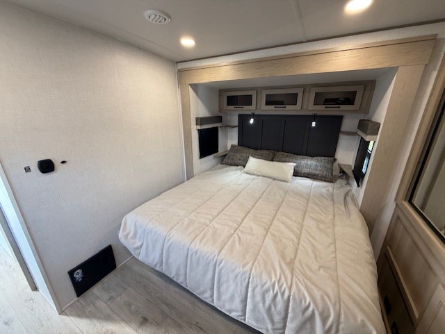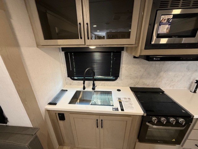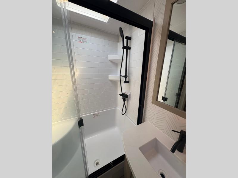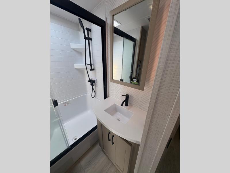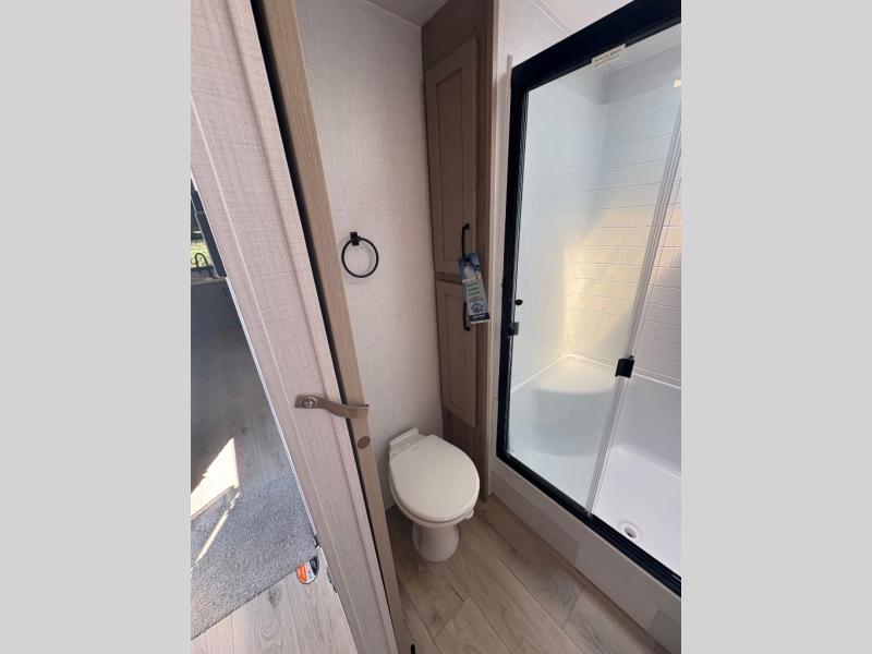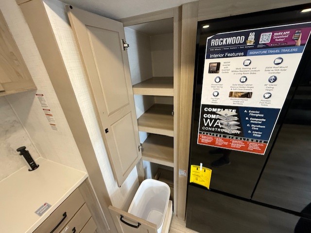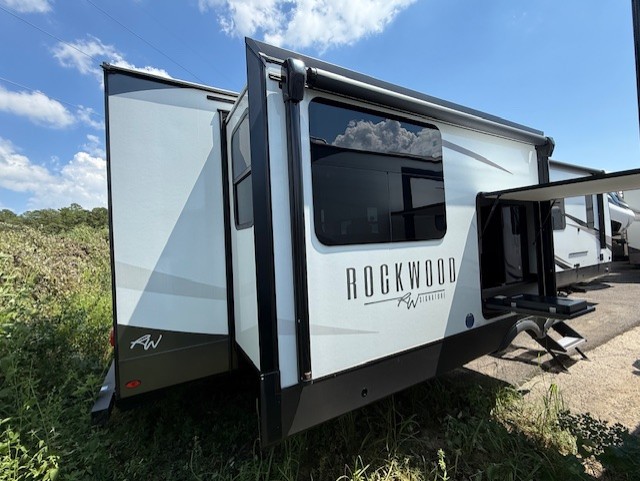 With any Rockwood Signature fifth wheel or travel trailer by Forest River RV, you will enjoy superior construction that includes laminated white fiberglass sidewalls, a radius roof with vaulted interior ceilings, plus radiant foil insulation and an enclosed underbelly for use in all types of weather. Some convenient exterior features include Keyed Alike locks, a rear ladder, a 200W solar panel, and a tire pressure monitor system with a monitor for added safety. The interior offers a One Touch OneControl panel with WeRV app control, for lights, awning, slides, water heater and more, and the Air 360+ omnidirectional antenna with WiFi prep lets you work while away from home if needed. You will also appreciate the interior vaulted ceilings, residential soft close doors and drawers, solid surface kitchen countertops, and designer kitchen backsplash!