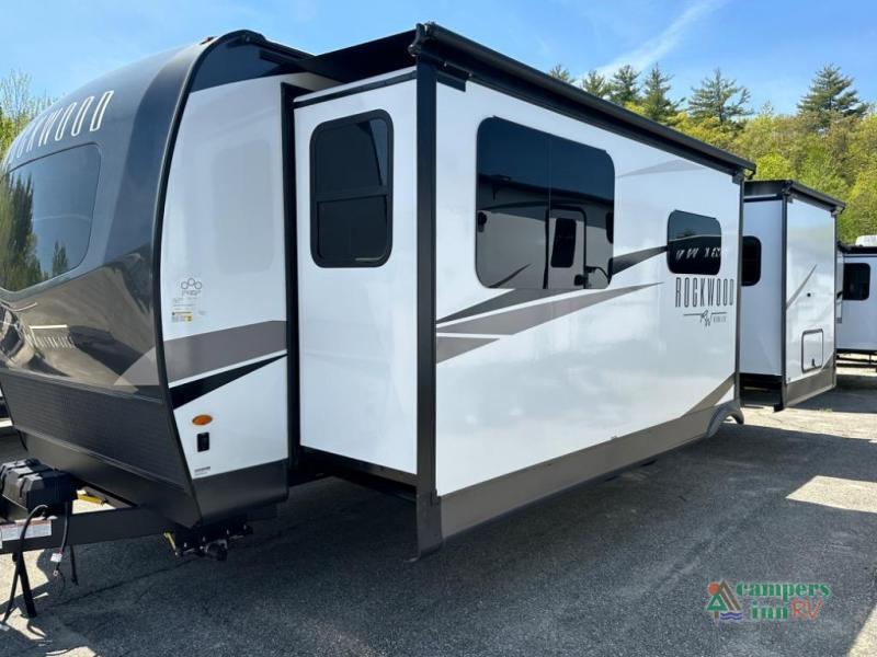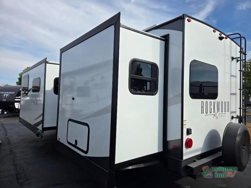 Each Rockwood Ultra Lite travel trailer by Forest River includes superior construction with a high gloss front cap, laminated white fiberglass sidewalls, and tinted frameless windows for a sleek look. The torsion axle, Rubber-Ryde suspension will make towing smooth and hassle-free, along with the nitrogen filled, Goodyear Endurance tires and the tire pressure monitor system. Interior comforts include designer kitchen backsplash, solid wood cabinet doors with hidden hinges, and night roller shades to name a few. Choose a Rockwood Ultra Lite travel trailer today!