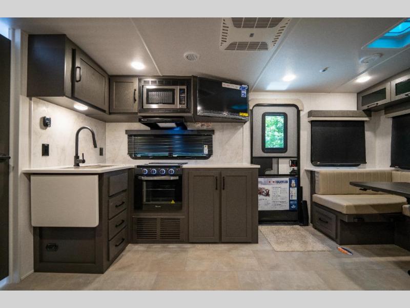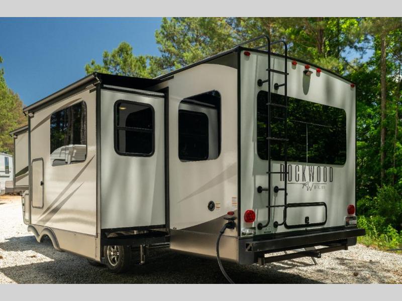 Each Rockwood Ultra Lite travel trailer by Forest River includes superior construction with a high gloss front cap, laminated white fiberglass sidewalls, and tinted frameless windows for a sleek look. The torsion axle, Rubber-Ryde suspension will make towing smooth and hassle-free, along with the nitrogen filled, Goodyear Endurance tires and the tire pressure monitor system. Interior comforts include designer kitchen backsplash, solid wood cabinet doors with hidden hinges, and night roller shades to name a few. Choose a Rockwood Ultra Lite travel trailer today!