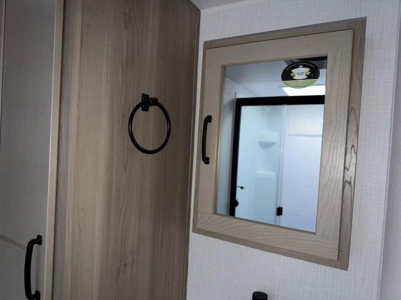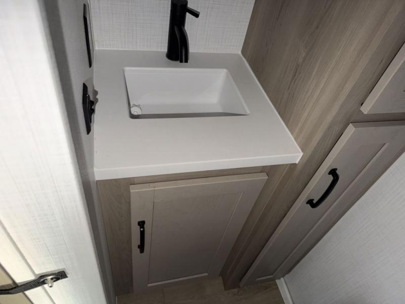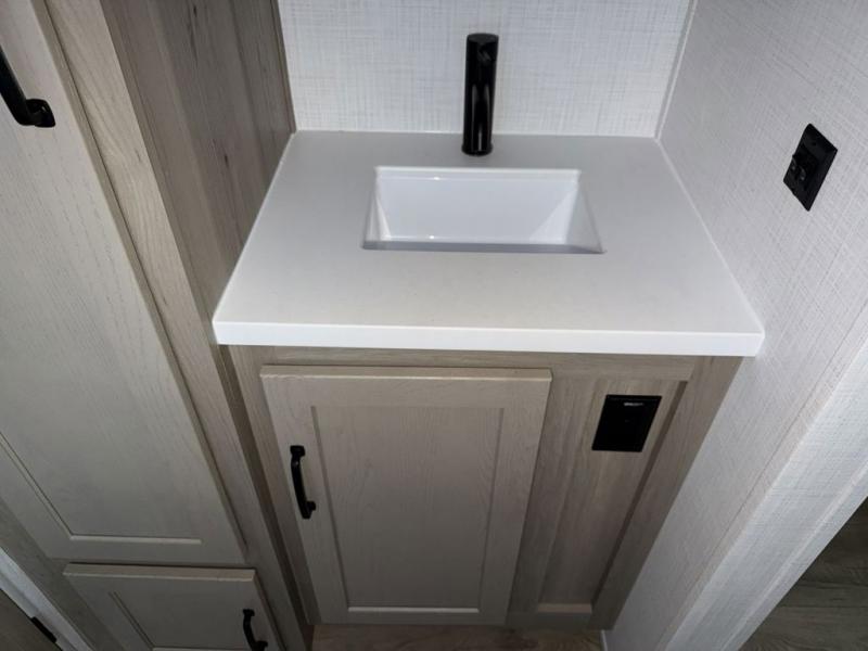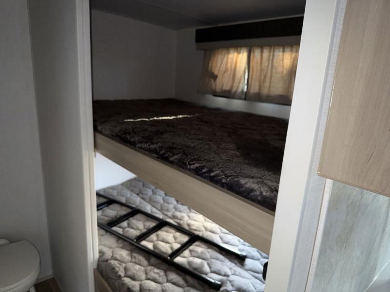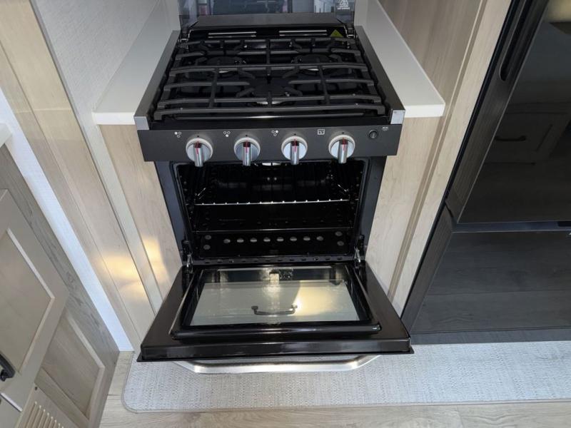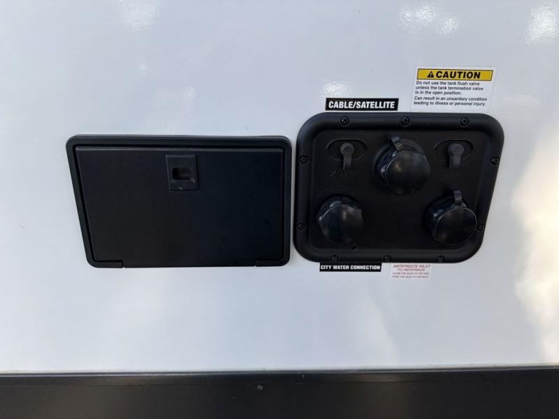 If you've been searching for a full-featured travel trailer, this is the one! Not only will you enjoy your own space up front in the master bedroom, but your guests can claim the rear bunkhouse suite all to themselves. There are two bunks with storage here, along with a desk, and a half bath for convenience. Your crew can meet in the middle living area on the theater seat or booth dinette. There is also a 39" TV here for movie nights! The chef can choose to cook indoors on the three burner range, or head outdoors to use the exterior griddle. A full walk-thru bath is sure to come in handy after a day at the lake, and did we mention this unit has dual entry doors?!