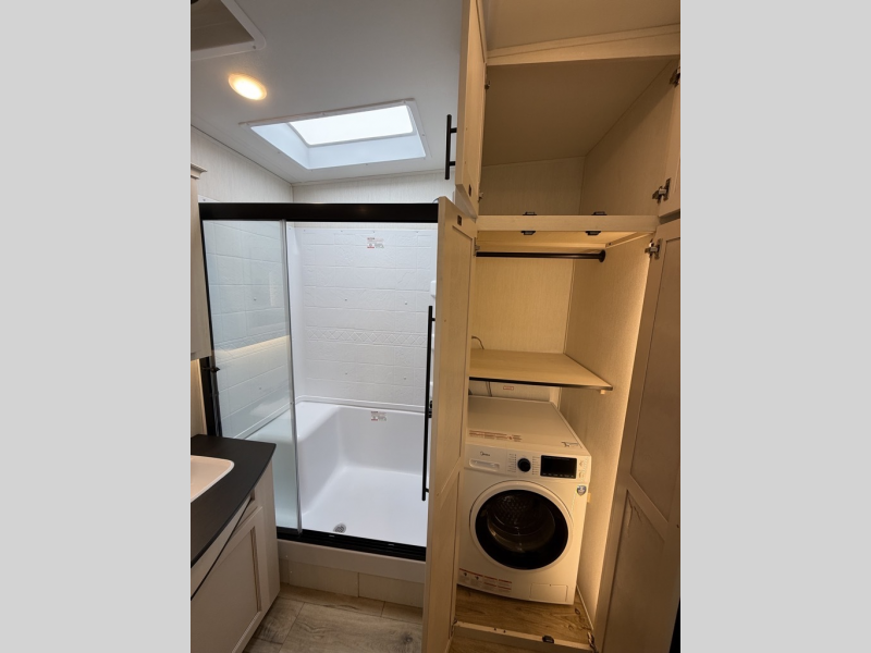 FULLY ENCLOSED & HEATED UNDERBELLY. 4 SEASONS PACKAGE WITH UPGRADED INSULATION AND DUAL-PANE WINDOWS. DESIGNED FOR YEAR-ROUND COMFORT IN HOT OR COLD CLIMATES. TANKLESS HOT WATER.