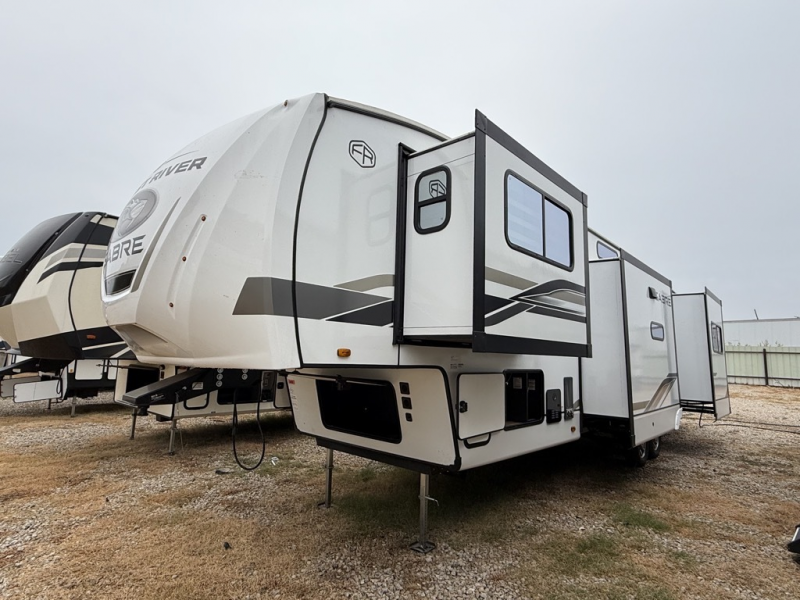 THIS BEAUTIFUL LIKE NEW 2025 FOREST RIVER SABRE 37FLH IS A 5TH WHEEL LOADED WITH LUXURY!! 42 LONG. 5 SLIDES. 2 BATHROOMS, UPSTAIRS FRONT LIVING WITH KING MASTER SUITE. BEAUTIFUL BATHROOM & CLOSET. WASHER/DRYER included.