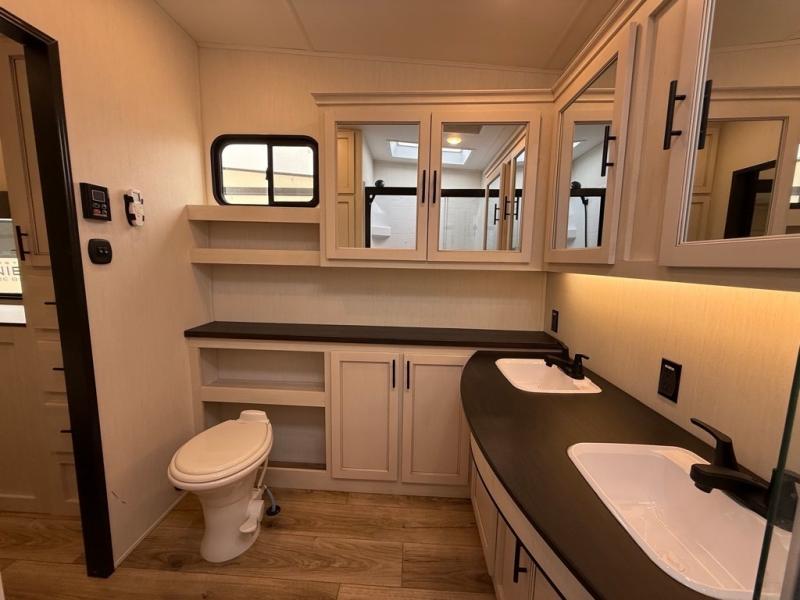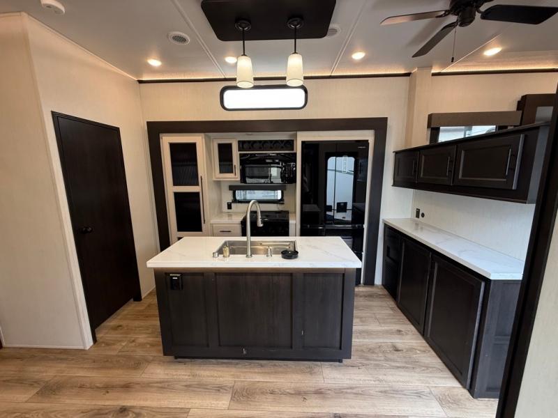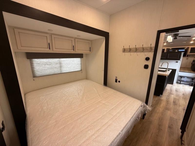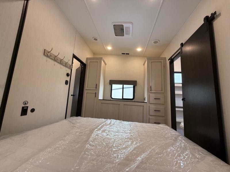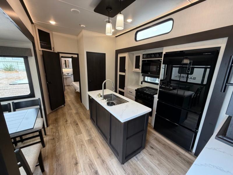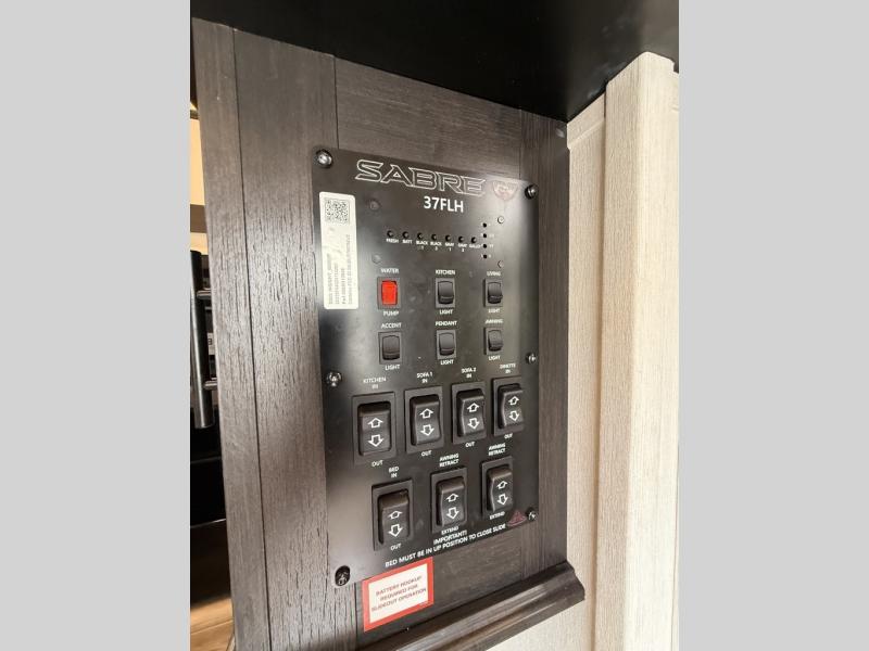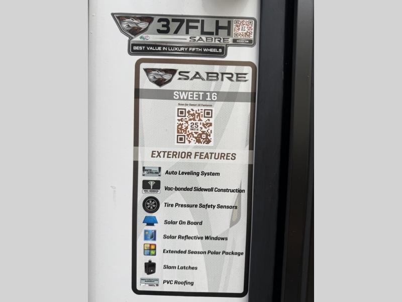 THIS BEAUTIFUL LIKE NEW 2025 FOREST RIVER SABRE 37FLH IS A 5TH WHEEL LOADED WITH LUXURY!! 42 LONG. 5 SLIDES. 2 BATHROOMS, UPSTAIRS FRONT LIVING WITH KING MASTER SUITE. BEAUTIFUL BATHROOM & CLOSET. WASHER/DRYER included.