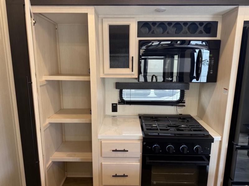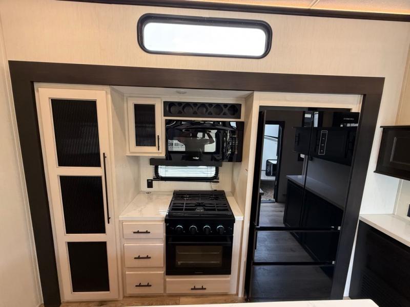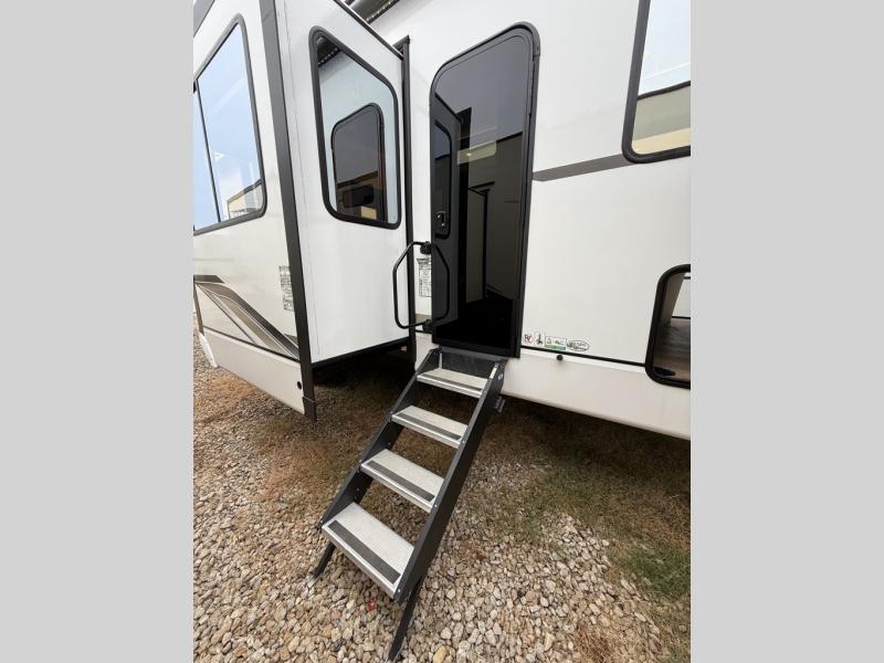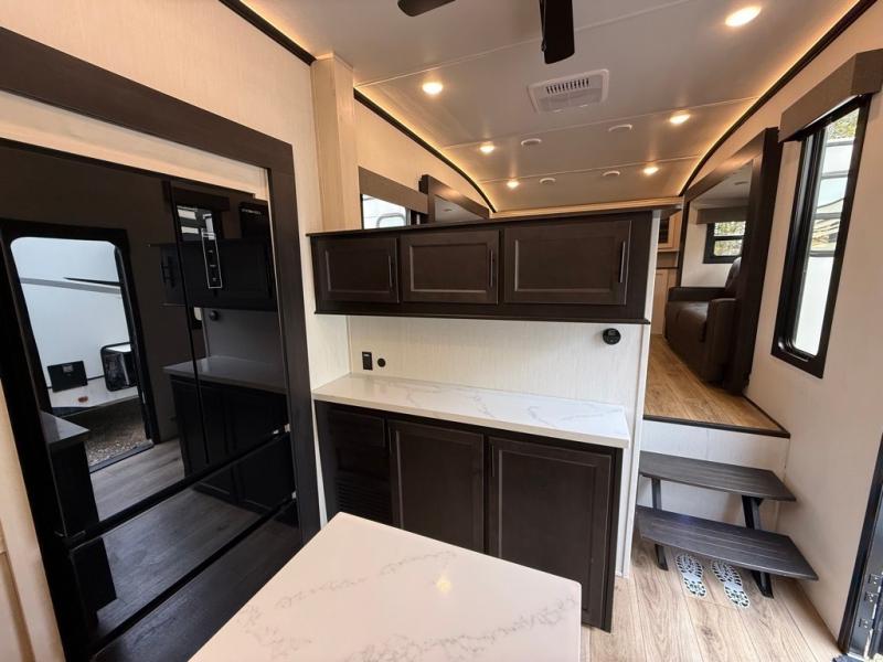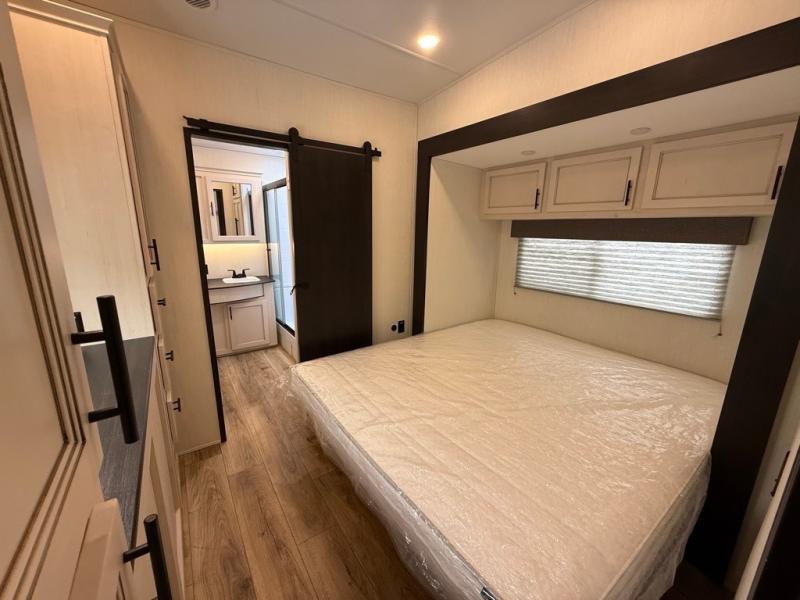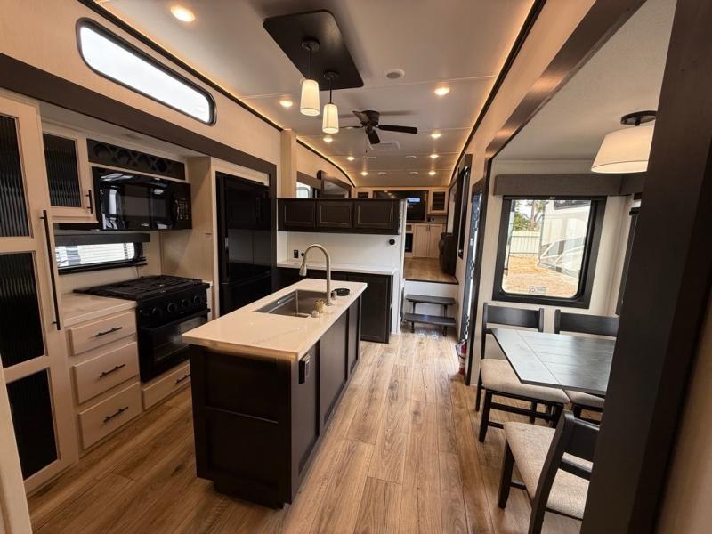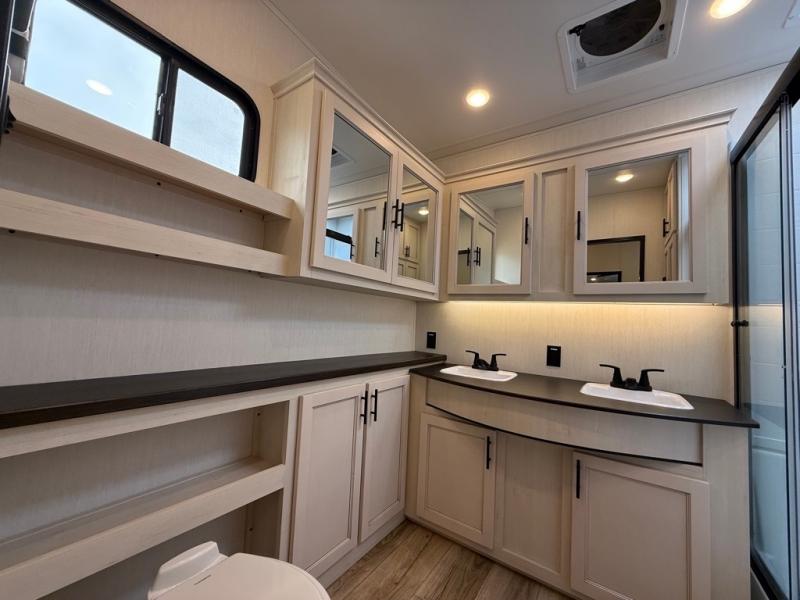 THIS BEAUTIFUL LIKE NEW 2025 FOREST RIVER SABRE 37FLH IS A 5TH WHEEL LOADED WITH LUXURY!! 42 LONG. 5 SLIDES. 2 BATHROOMS, UPSTAIRS FRONT LIVING WITH KING MASTER SUITE. BEAUTIFUL BATHROOM & CLOSET. WASHER/DRYER included.