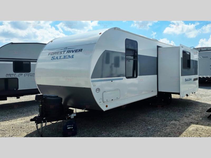 The Salem Platinum travel trailers are packed with hassle-free camping amenities! There are a variety of floorplans to choose from between three different regions. The heated and enclosed Accessibelly will help protect against the elements and debris during transport, and the exterior fiberglass is sure to be eye-catching! There are stylish roller shades inside, along with updated backsplash, elegant curtain rods and curtains, plus many more interior comforts! Choose a Salem travel trailer today for quality and value!