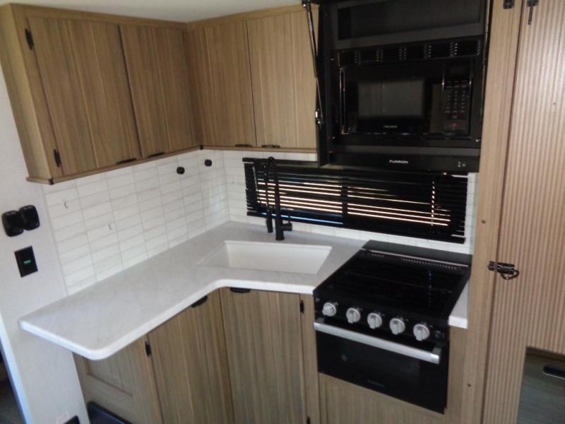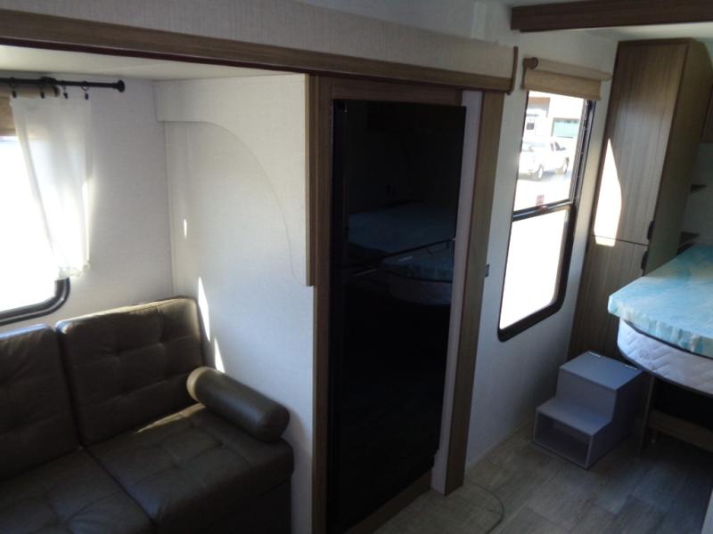 Set your sights on this Salem Platinum travel trailer that can comfortably sleep two or four making it the perfect unit for a small family. After you've set up camp and had a look around the campground, come back to this unit to enjoy lunch or take a quick rest. The chef of the family can cook on the cooktop or make something quick in the microwave, and the chaise lounge will be a perfect spot to relax or play a game of cards. You'll appreciate the full rear bath that includes a walk-in shower and a closet for extra towels. This unit also features a front private bedroom with a custom king Versa-Tilt bed that you are sure to love, and you'll find plenty of storage space throughout, including an exterior pass-through compartment for the fishing poles or other outdoor gear.