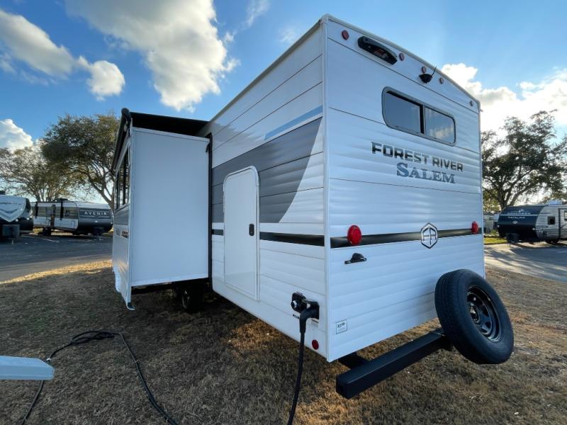 The Salem travel trailers are packed with hassle-free camping amenities! There are a variety of floorplans to choose from between three different regions. The heated and enclosed Accessibelly will help protect against the elements and debris during transport, and the exterior retro/metal redesign is sure to be eye-catching! There are stylish roller shades inside, along with updated backsplash, elegant curtain rods and curtains, plus many more interior comforts! Choose a Salem travel trailer today for quality and value!