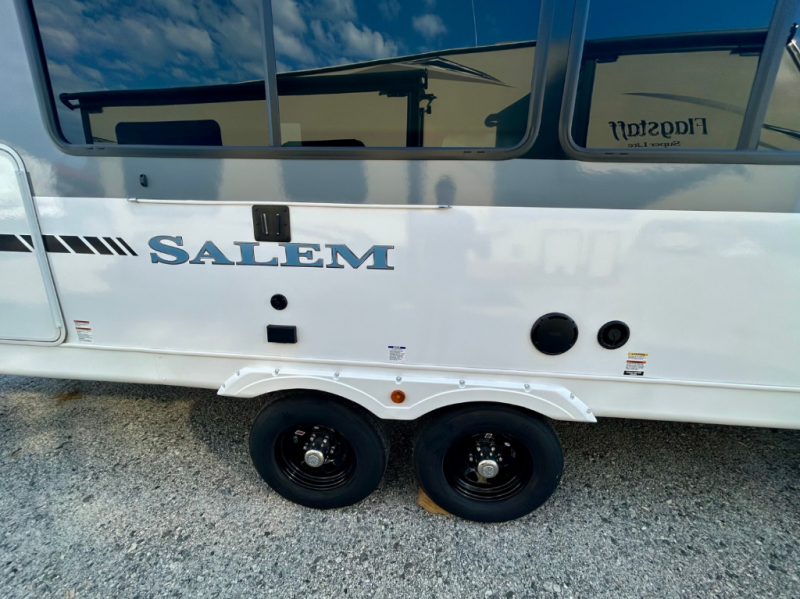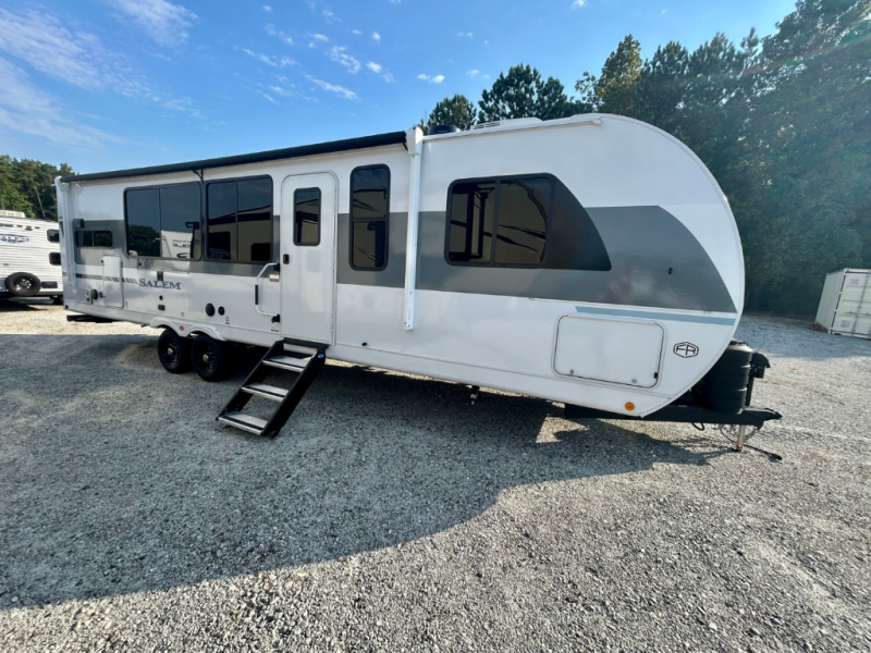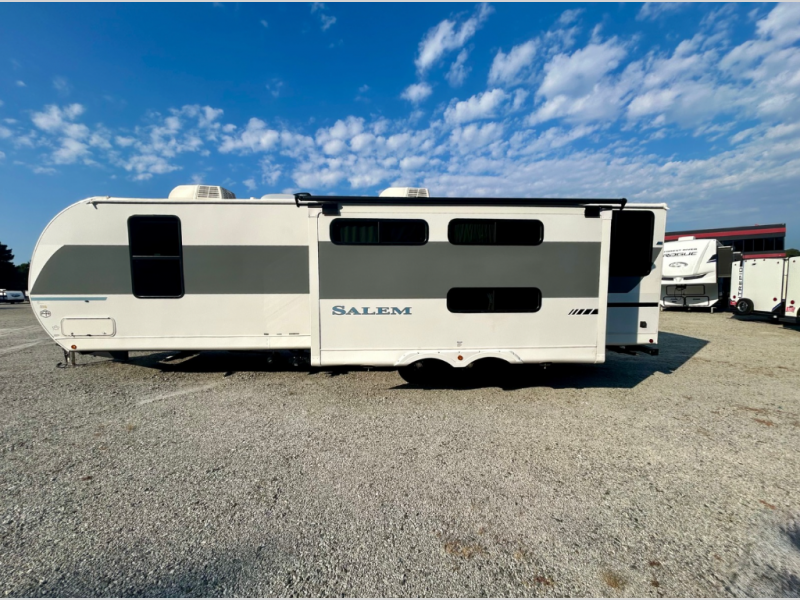 The Salem travel trailers are packed with hassle-free camping amenities! There are a variety of floorplans to choose from between three different regions. The heated and enclosed Accessibelly will help protect against the elements and debris during transport, and the exterior is sure to be eye-catching! There are stylish roller shades inside, along with updated backsplash, elegant curtain rods and curtains, plus many more interior comforts! Choose a Salem travel trailer today for quality and value!