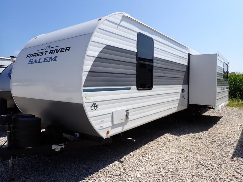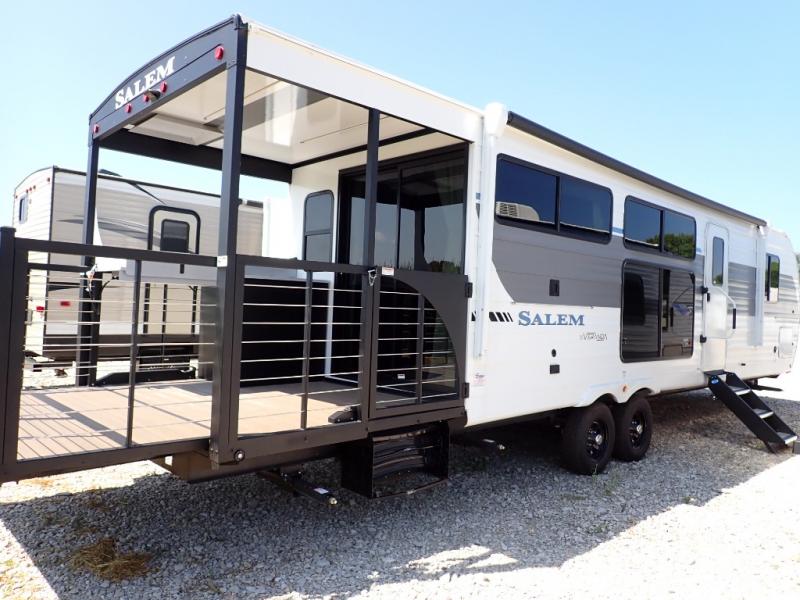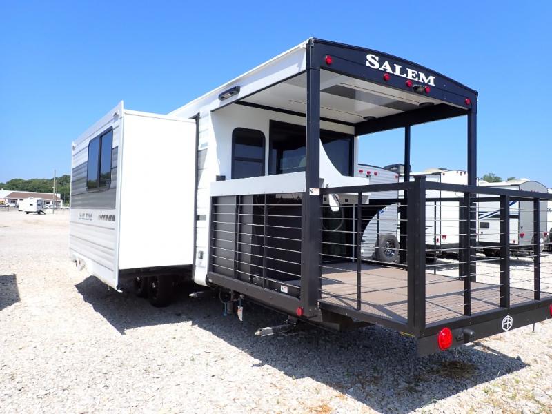 The Salem travel trailers are packed with hassle-free camping amenities! There are a variety of floorplans to choose from between three different regions. The heated and enclosed Accessibelly will help protect against the elements and debris during transport, and the exterior retro/metal redesign is sure to be eye-catching! There are stylish roller shades inside, along with updated backsplash, elegant curtain rods and curtains, plus many more interior comforts! Choose a Salem travel trailer today for quality and value!