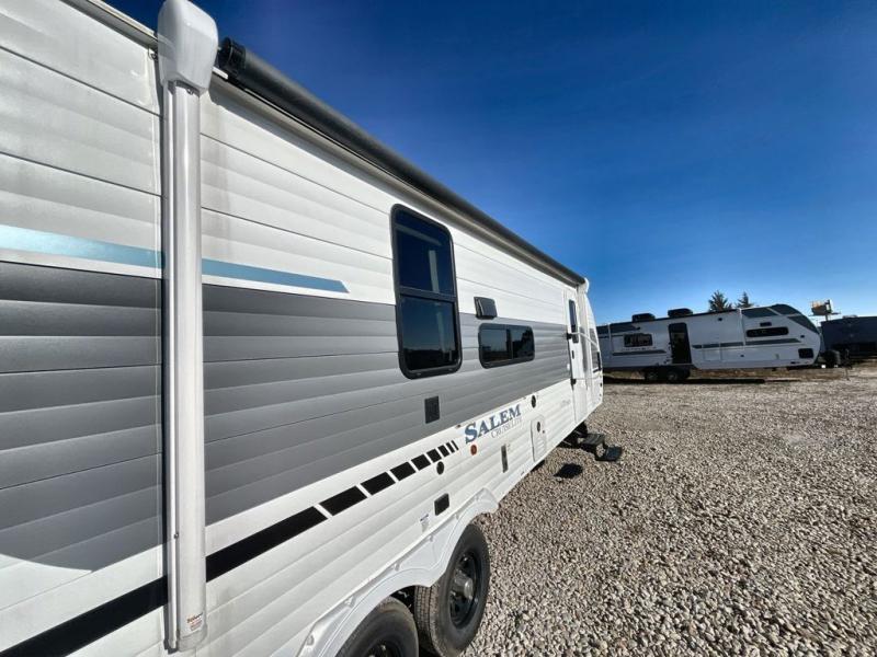 The Salem Cruise Lite travel trailers and toy haulers are value-minded units packed with great camping features! There are a variety of floorplans to choose from between two different regions. The enclosed Accessibelly will help protect against the elements and debris during transport, and the exterior retro/metal redesign is sure to be eye-catching! There are stylish roller shades inside, along with updated backsplash, elegant curtain rods and curtains, plus many more interior comforts! Choose a Salem Cruise Lite today for quality and value!