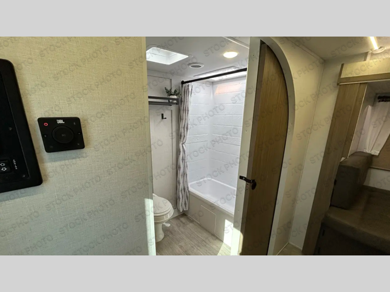 You're sure to make camping memories in this spacious travel trailer! You can sleep four to five people each night thanks to the the custom king bed with Versa Tilt in the front bedroom plus the Versa-Lounge and booth dinette within the large slide out! The full kitchen will let you make meals each day, and you'll appreciate the hidden pantry with shelves behind the fireplace. And don't overlook the full rear bath, complete with a tub/shower and ample counter space for your things.