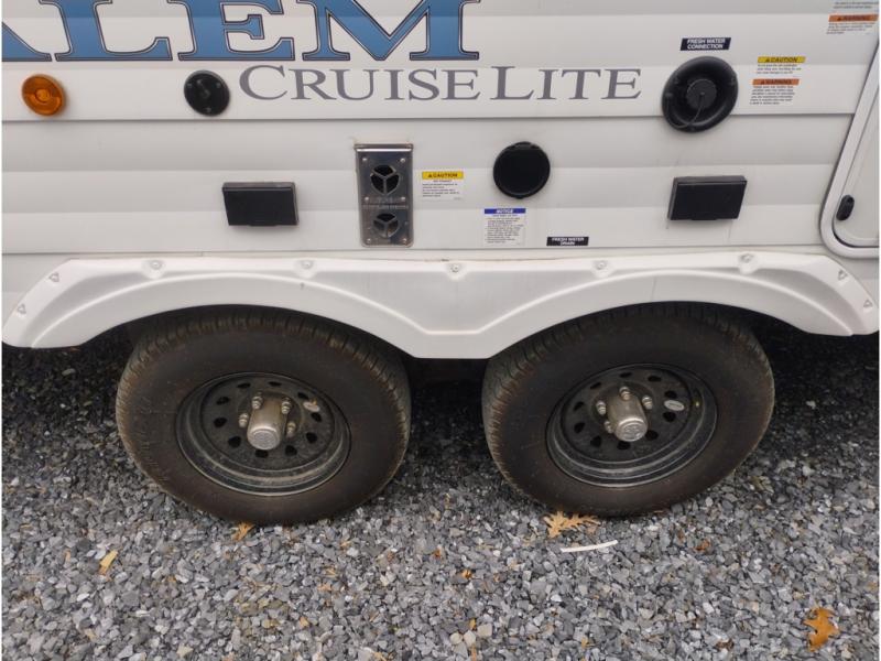 The Salem Cruise Lite travel trailers and toy haulers are value-minded units packed with great camping features! There are a variety of floorplans to choose from between two different regions. The enclosed Accessibelly will help protect against the elements and debris during transport, and the exterior retro/metal redesign is sure to be eye-catching! There are stylish roller shades inside, along with updated backsplash, elegant curtain rods and curtains, plus many more interior comforts! Choose a Salem Cruise Lite today for quality and value!