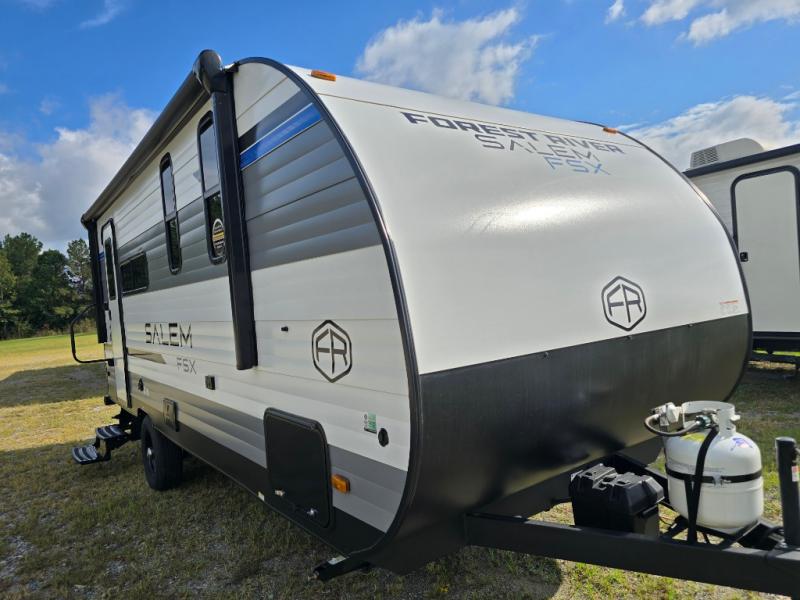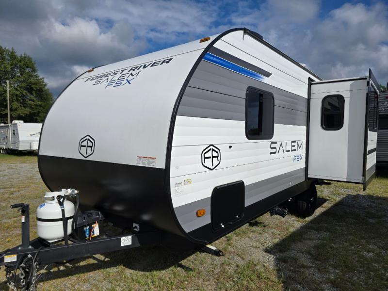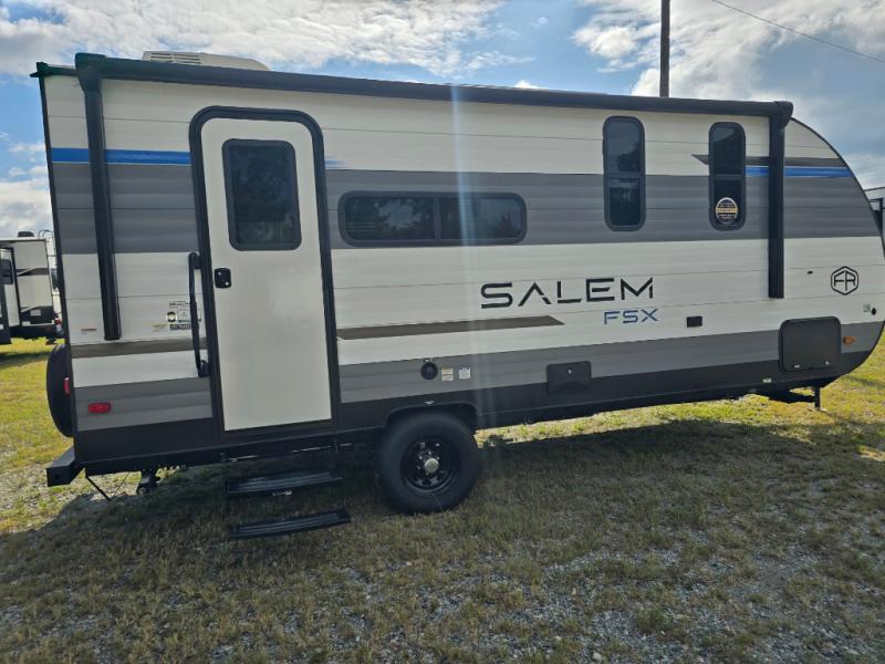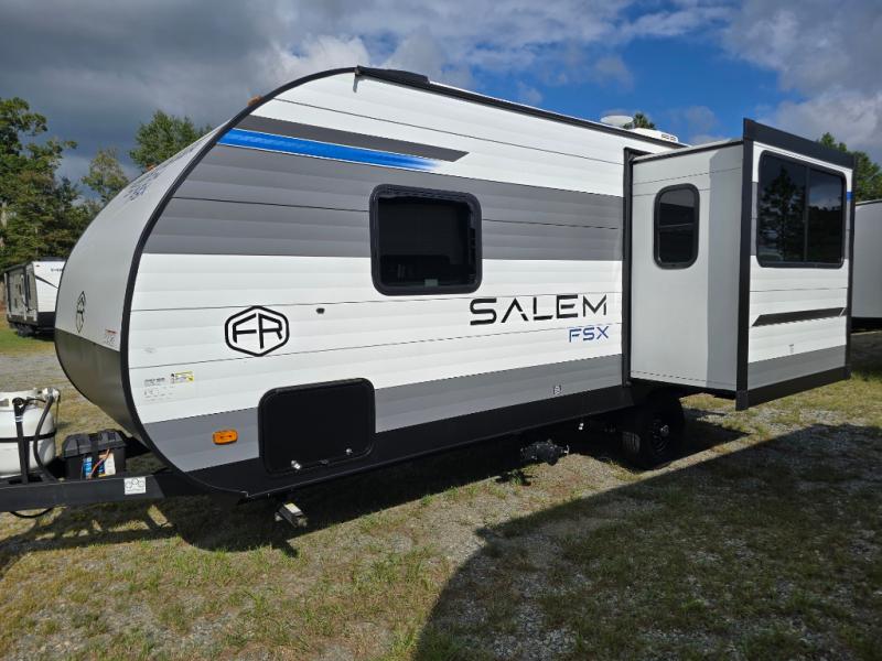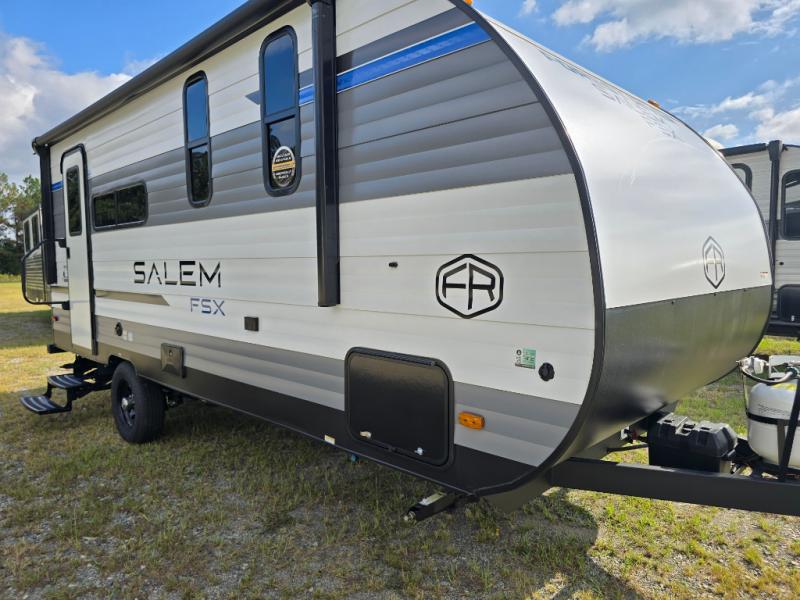 The Forest River Salem FSX travel trailers and toy hauler travel trailers are ultra comfortable and lightweight, perfect for first time or seasoned campers alike! You will love how easy it will be to relax with residential features that will make your space feel just like home, and the durable construction means you can enjoy your RV for years to come. There are a wide variety of floorplans to choose from, including couple's trailers, bunk models, and toy haulers, all with full bath and kitchen amenities and plenty of storage for all your gear!