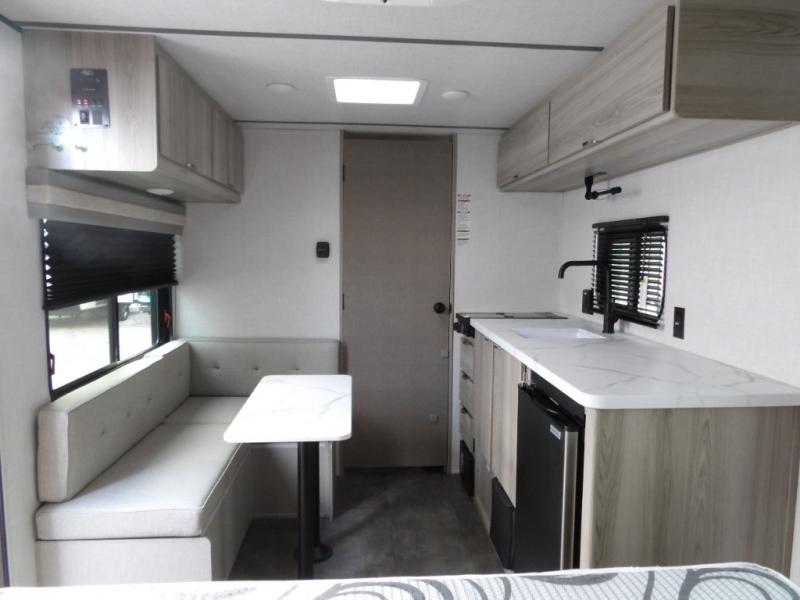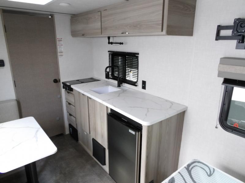 This Limited Edition Salem FSX travel trailer is the perfect couples unit or to camp solo! Included you will find a front queen bed with dual wardrobes, and an open lounge with a table where you can dine. The exterior storage has an oversized door for storage so you can fit those bigger items, and you'll appreciate the 8' 12V power awning to give you some shade. The Limited Edition Camp Ready package includes a backup camera prep, a powder coated I-beam chassis for towing durability, roof vents for airflow and natural light, plus more!