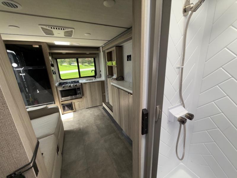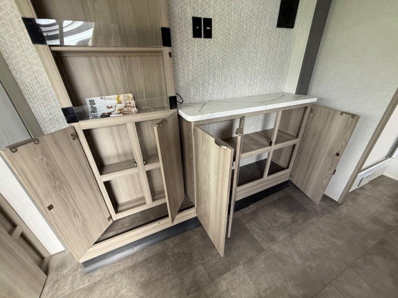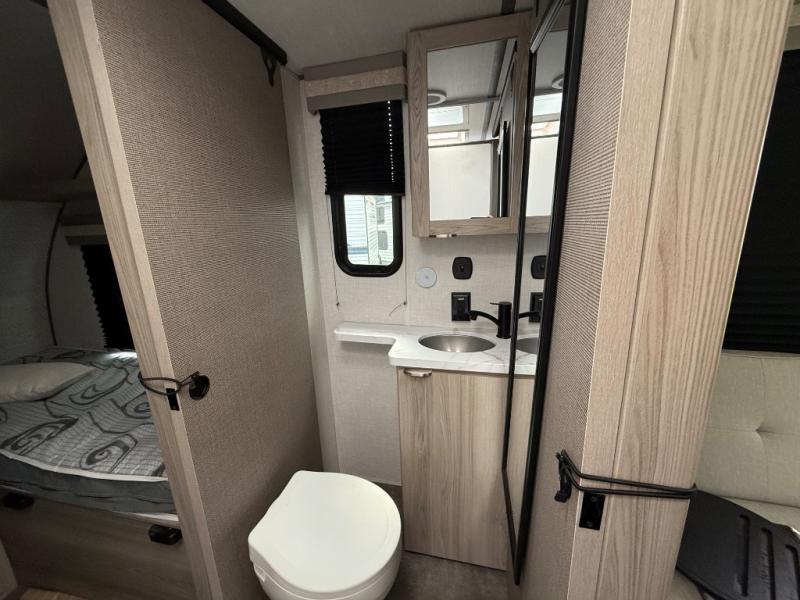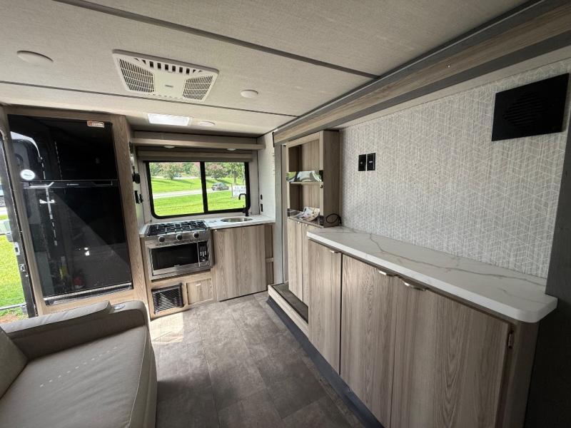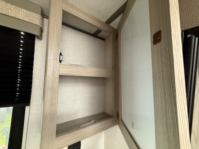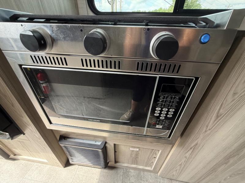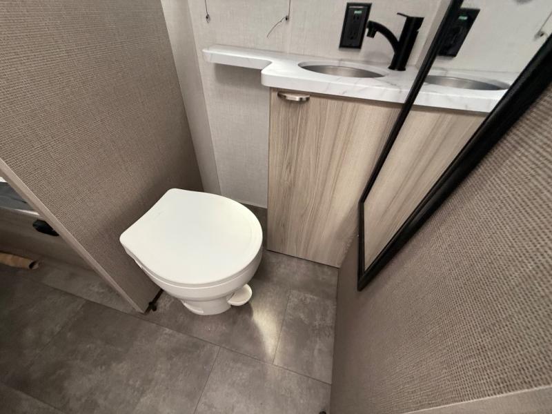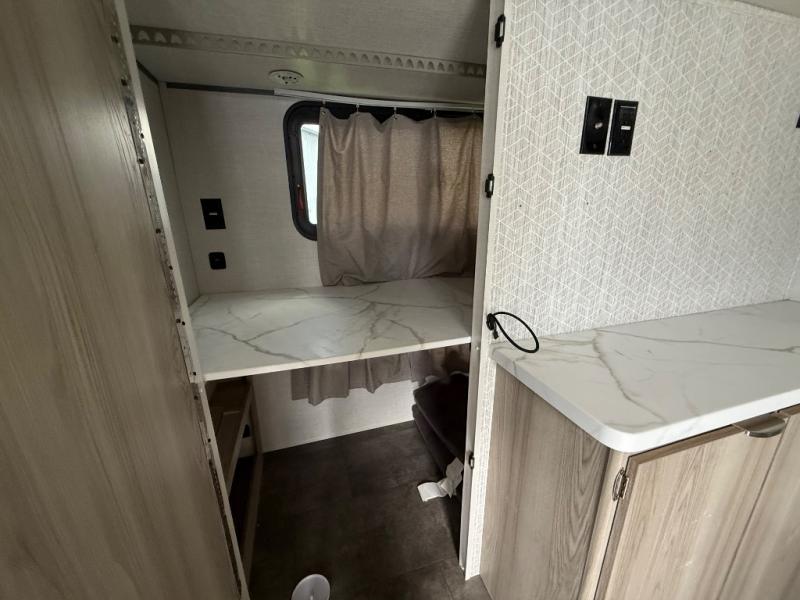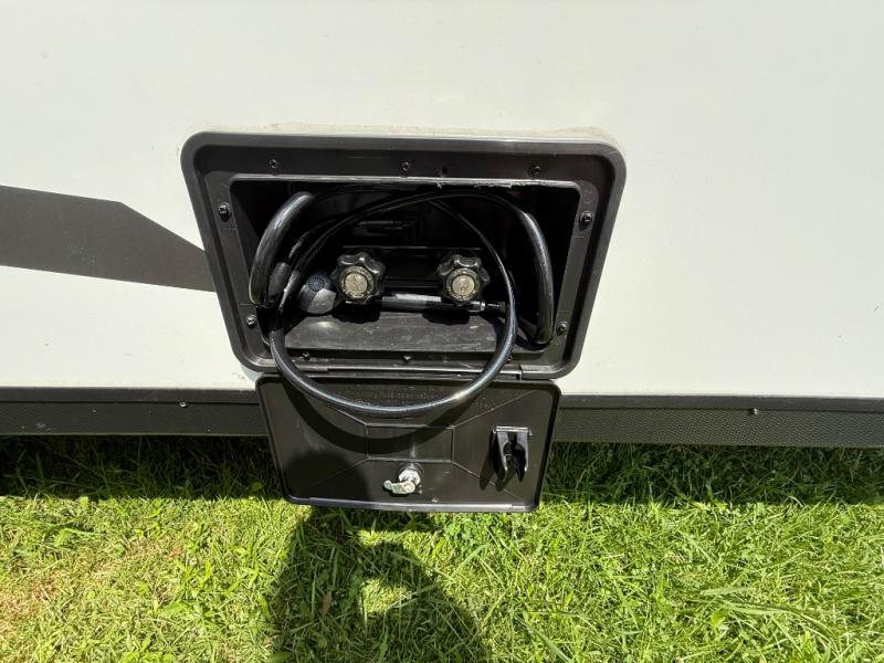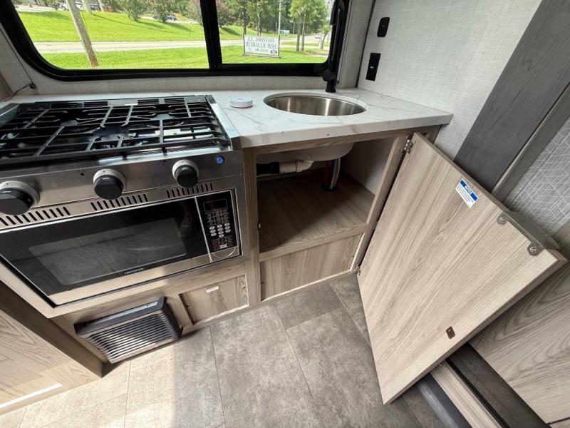 Versatility is found throughout this travel trailer! The front two twin beds convert to a king bed for comfortable sleeping at night, plus there is a split bunk bed slide for an additional sleeping space. The bunk bed is located behind the spice rack door and TV for your entertainment and cooking needs. Speaking of cooking, you can prepare your best home cooked meals with the cooktop and store any leftovers in the dual swinging 12V refrigerator. Relax each night in the theater seating and freshen up in the walk-through bathroom each morning. If you wish to go off grid then you can add the optional solar extended 200W power package!