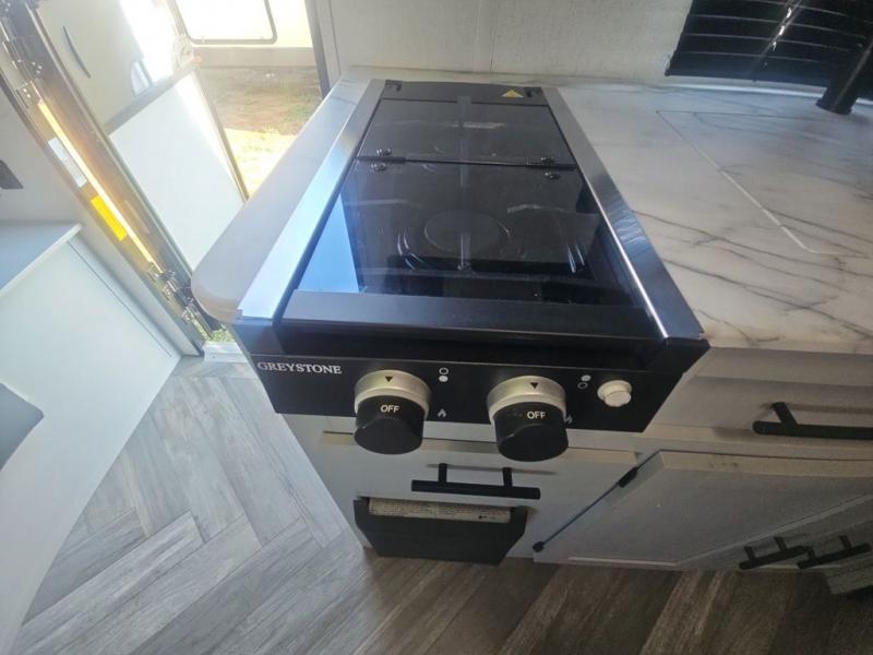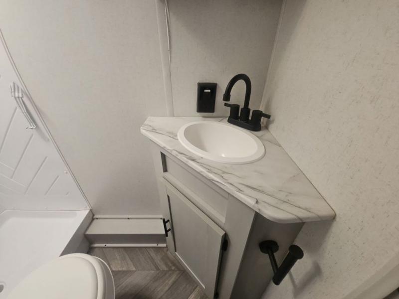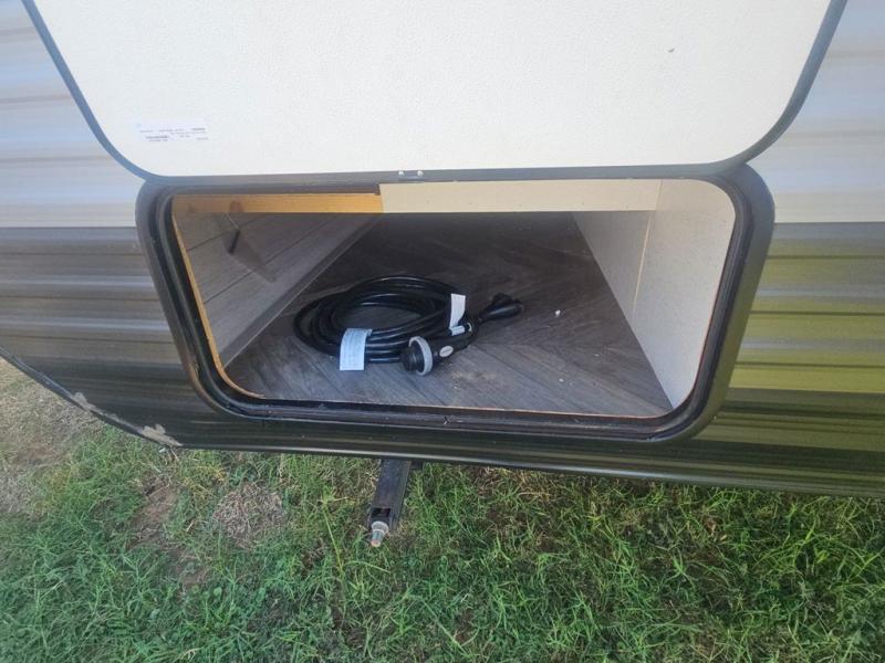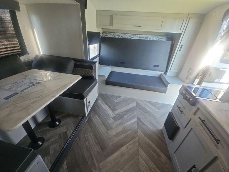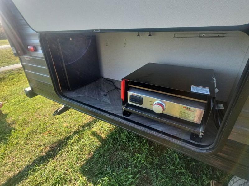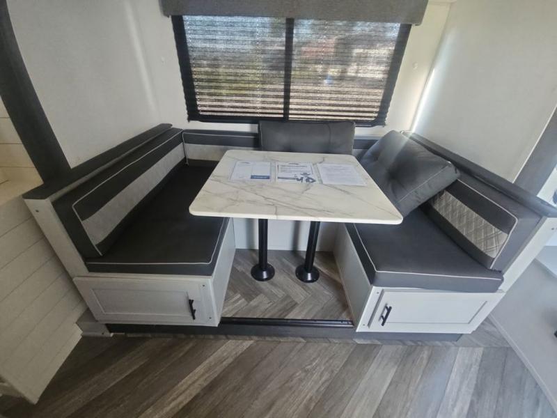 Start camping the right way in this travel trailer! It features a front Murphy bed that will double as your seating and sleeping space each day. The corner set of double-size bunk beds come with storage to keep things out of the way and are conveniently next to the rear corner bathroom with a shower with a skylight to freshen up in each morning. You can prepare your best home cooked meals indoors with the two burner cooktop or head to the outside kitchen to fry up some burgers while breathing in some fresh air. Enjoy your meals, play card games, and even sleep at the U-shaped dinette slide. You will also appreciate the outside shower and the exterior full pass-through storage for camp gear!