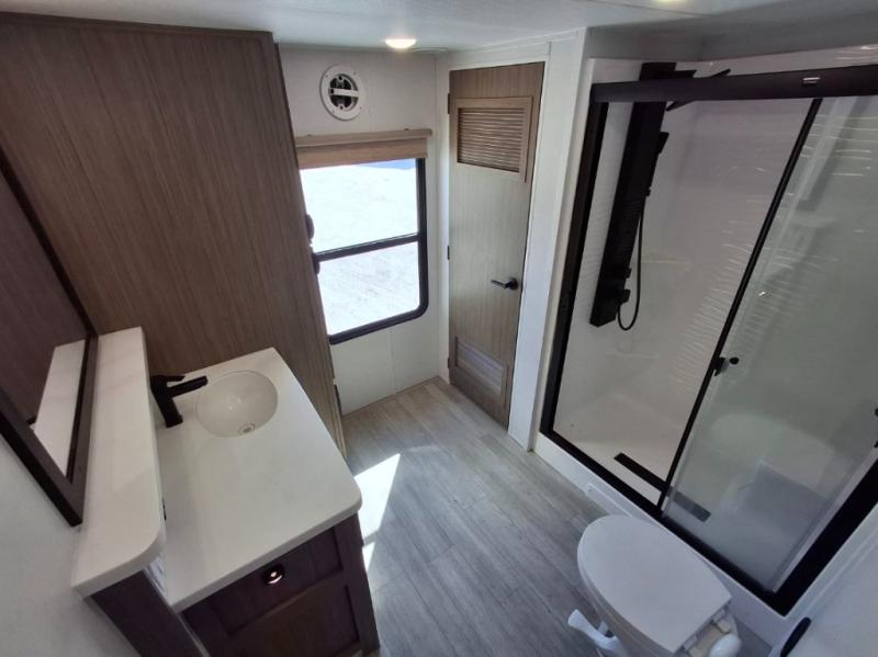 With any Salem Grand Villa destination trailer by Forest River, you can call home wherever you park it! There is a heated and enclosed Accessibelly for added protection in all seasons, LED "Blade Lighting" under the awning, Lippert On-The-Go ladder prep, plus many more exterior conveniences. Elegant curtain rods and curtains will have you feeling right at home, along with stainless steel kitchen appliances, stylish roller shades, and enhanced floating shelves for added storage. Each model includes a central vacuum with a sweep attachment to help keep your space tidy, a 60k on-demand tankless water heater for endless hot showers, a JBL 3-Zone media center, plus available options to further customize your trailer.