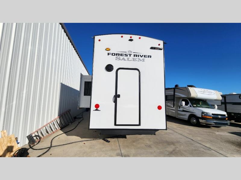 The Salem Hemisphere fifth wheels and travel trailers by Forest River are packed with features, while still being value-minded! Each model is constructed with laminated "Aluma Frame" sidewalls and floor with block foam insulation plus full length barreled ceilings for added head space. There are LED awning, marker and tail lights outside, along with an extra large pass-thru storage with slam latch baggage doors, plus solar prep and Lippert On-The-Go ladder prep. The 60K on-demand tankless water heater will provide endless hot showers, and the JBL sound system includes a head unit plus interior and exterior speakers to keep the party going. There are also many interior comforts found throughout that will make you feel right at home!