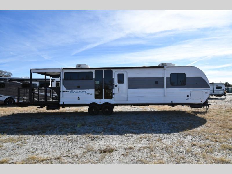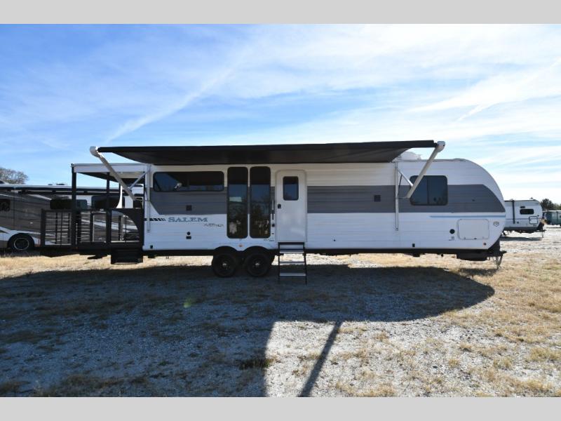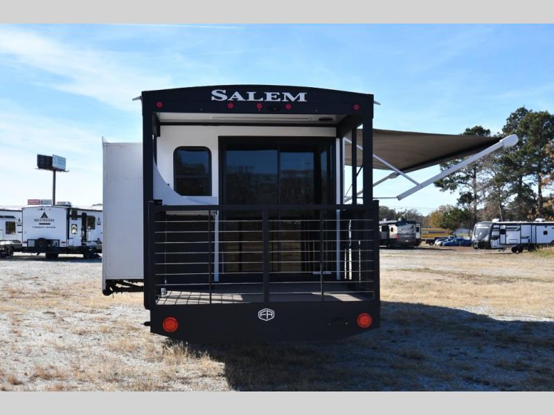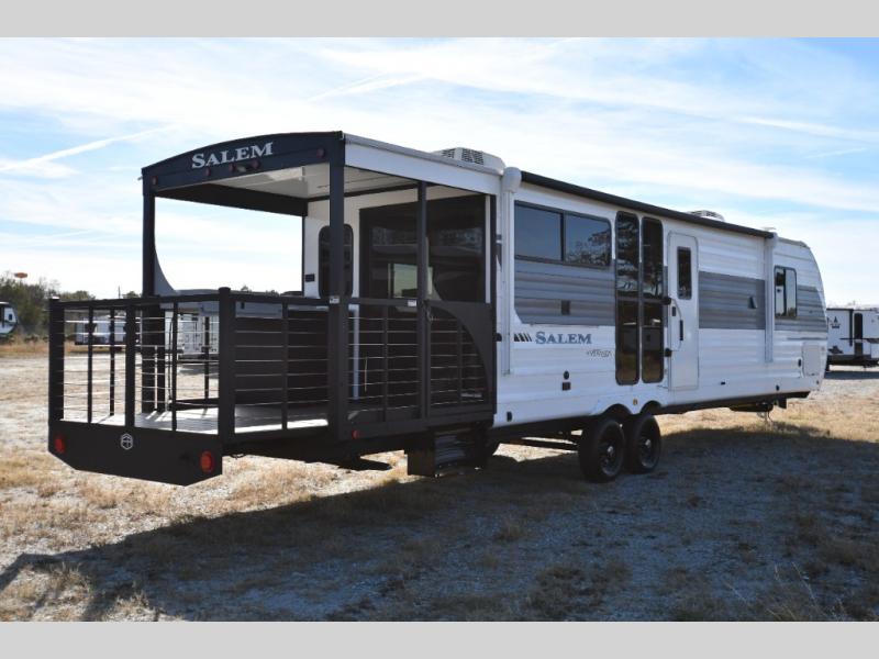 Make every campground feel like home with the Salem Veranda 34’s open floor plan, residential kitchen, and signature outdoor patio for relaxing under the stars.