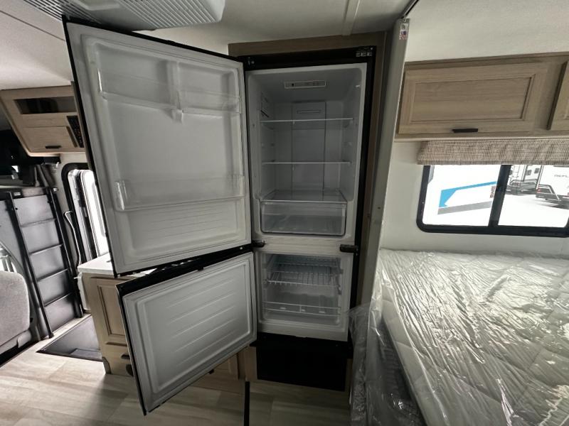 Take your family on great adventures in this Sunseeker LE Class C gas motorhome! This coach has a full kitchen equipped with a flip-up countertop, 1.3-cubic foot convection microwave, recessed three-burner range, soft-touch self-closing drawer guides, and a 10.7-cubic foot 12V refrigerator. Across from the kitchen is a U-shaped dinette that also has four seatbelts for traveling, and there are two large storage drawers in the dinette. The bathroom has an electric roof fan, an oxygen-infused shower head with flexible extension, and a shower skylight for more natural light in the morning. There is also a 12V LED TV for entertainment at night out in the main living area.