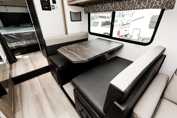 Each Forest River Sunseeker LE Class C gas motorhome comes with the LE Premier Package for your benefit! This package includes great features like backup/sideview cameras with rearview mirror monitor, a fiberglass front cap, an in-dash premium sound system with Bluetooth, a Winegard Air 360+ antenna with preparation for Gateway 4G Wi-Fi, toppers for the slide outs, and a 15,000 BTU ceiling-ducted, ultra-quiet roof air with heat pump. All of these premium features rest on a Superlite composite substrate, 2"-thick gel-coat sidewalls with lightweight composite waterproof material, block-foam insulation, and a fiberglass roof. There is a satellite/cable connection, a 30,000 BTU furnace, a Maxx Air multi-speed power fan, and black-out roller shades.