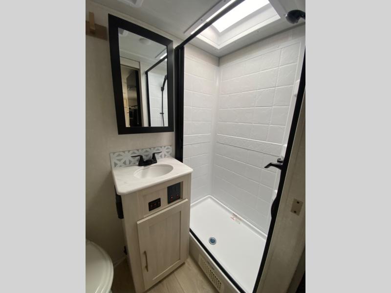 With any Surveyor Legend travel trailer by Forest River you will enjoy quality craftsmanship, convenient amenities, and at-home comforts. The Azdel composite walls provide a longer-lasting trailer, and the power tongue jack with a hitch light will get you back on the road in no-time. There are also Goodyear tires and a tire pressure monitoring system for hassle-free towing. Each model includes the Surveyor Legend Package that comes standard with oversized dinette storage access doors, front slam latch baggage doors, plus an automotive style tinted front windshield. You'll appreciate camping with a tankless water heater for endless hot showers, a 2" accessory hitch to bring bikes along, plus carpet-free interiors and a central vacuum system for easy clean up.
