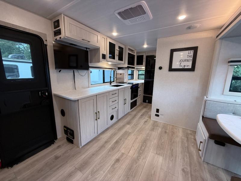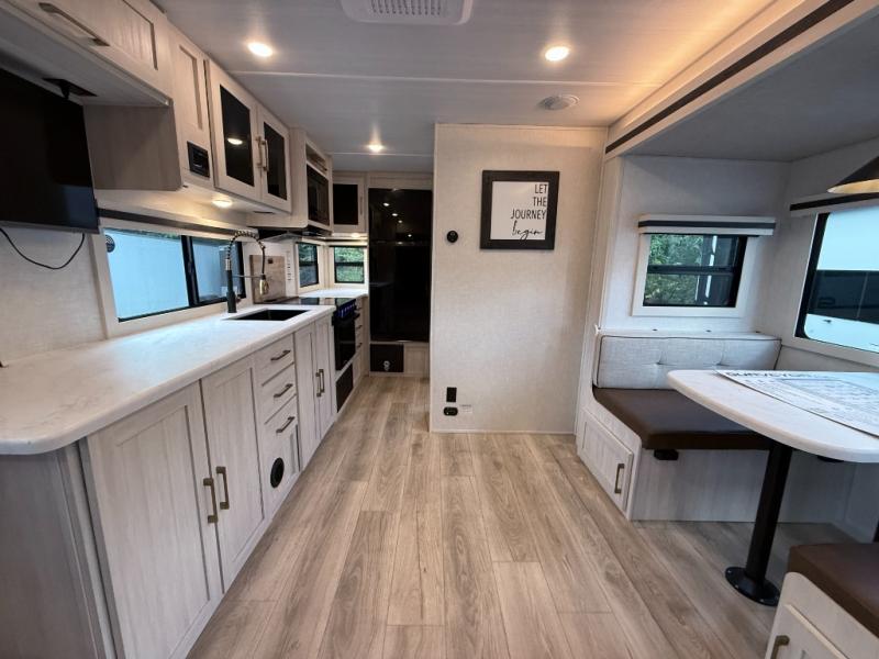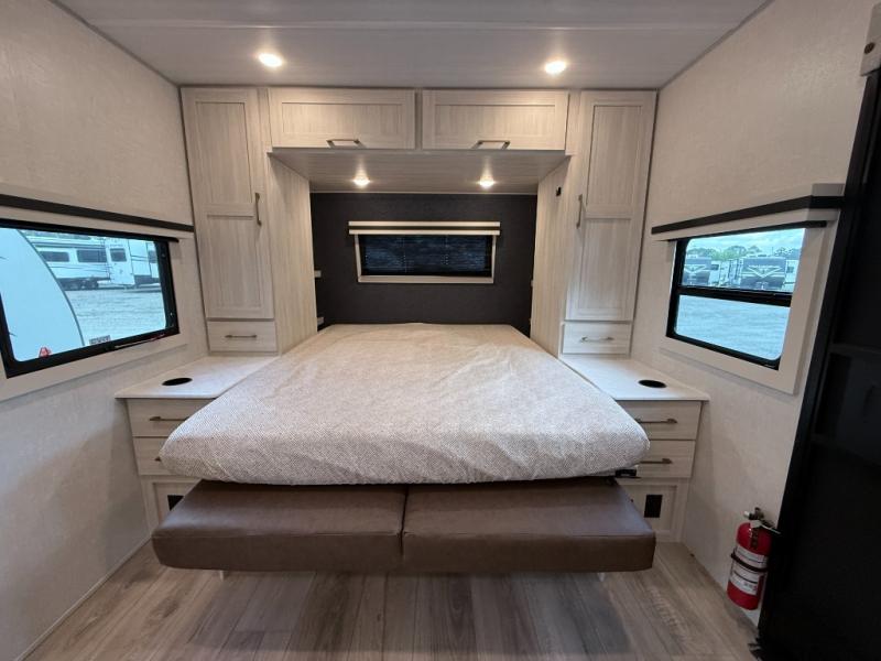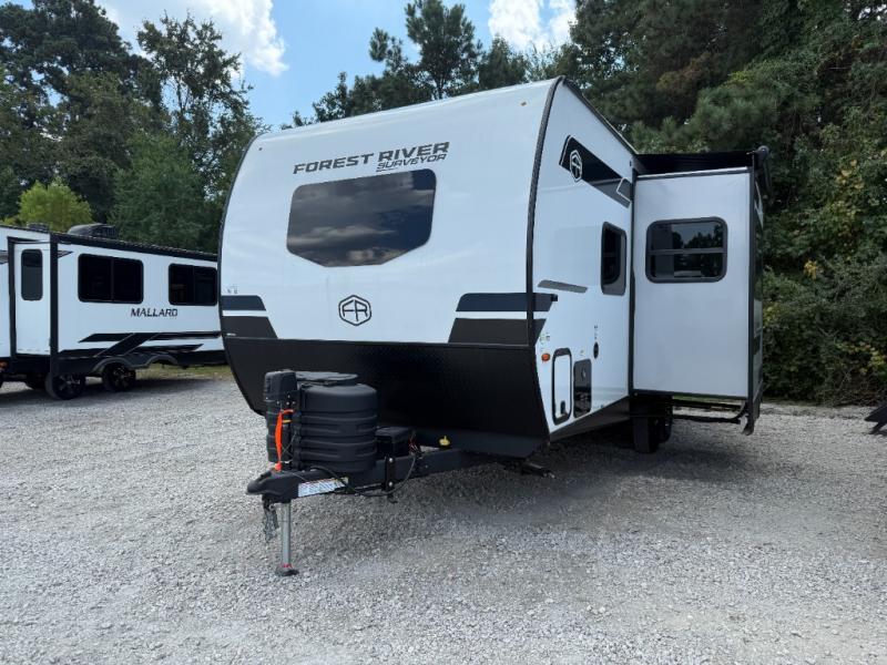 The Forest River Surveyor Legend 203RKLE is a compact and well-equipped travel trailer designed for couples seeking comfort and flexibility. With a Murphy bed, versatile dinette slide, full indoor and outdoor kitchen options, and a spacious bath, it combines smart design with easy towing.