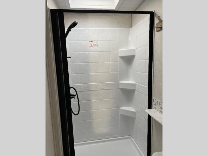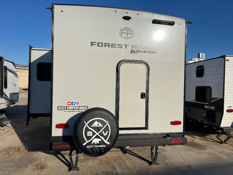 With any Surveyor Legend travel trailer by Forest River you will enjoy quality craftsmanship, convenient amenities, and at-home comforts. The Azdel composite walls provide a longer-lasting trailer, and the power tongue jack with a hitch light will get you back on the road in no-time. There are also Goodyear tires and a tire pressure monitoring system for hassle-free towing. Each model includes the Surveyor Legend Package that comes standard with oversized dinette storage access doors, front slam latch baggage doors, plus an automotive style tinted front windshield. You'll appreciate camping with a tankless water heater for endless hot showers, a 2" accessory hitch to bring bikes along, plus carpet-free interiors and a central vacuum system for easy clean up.
