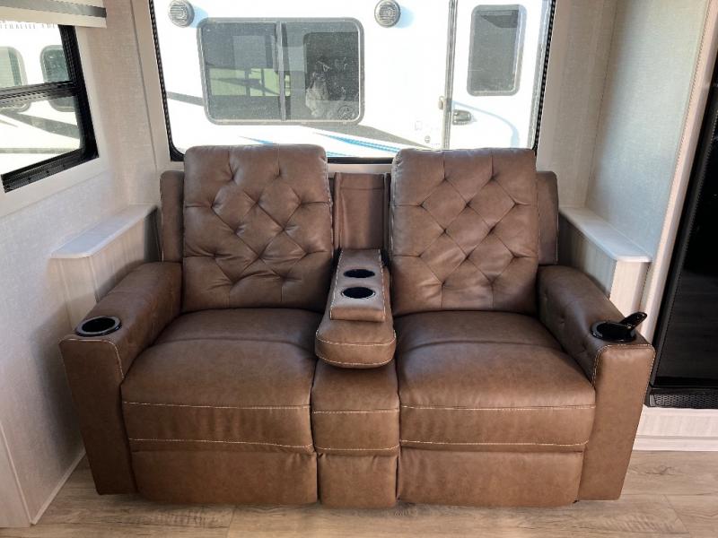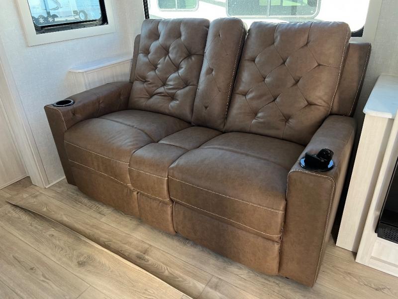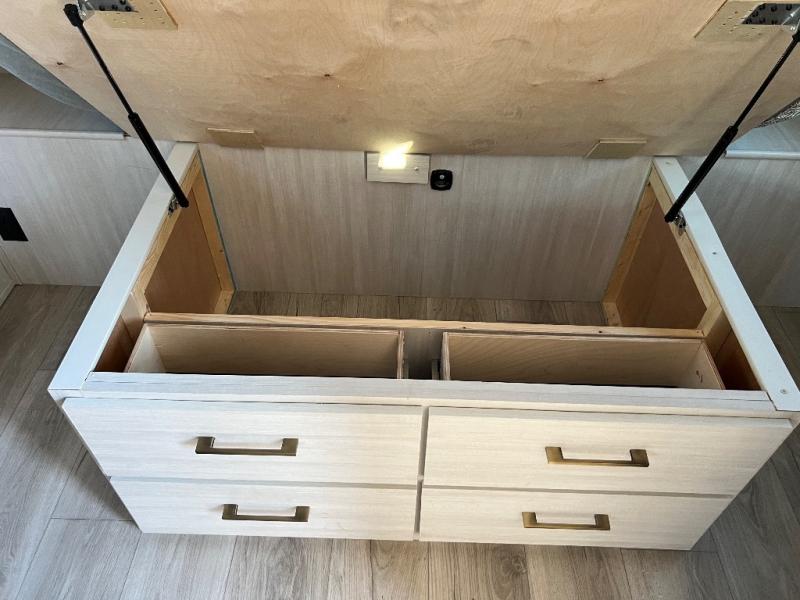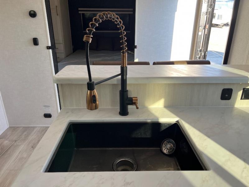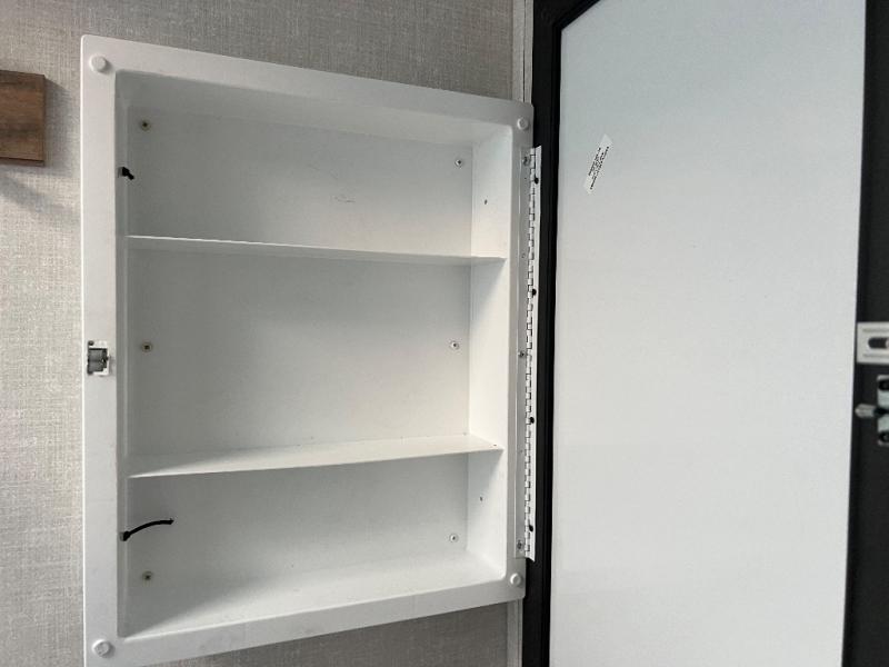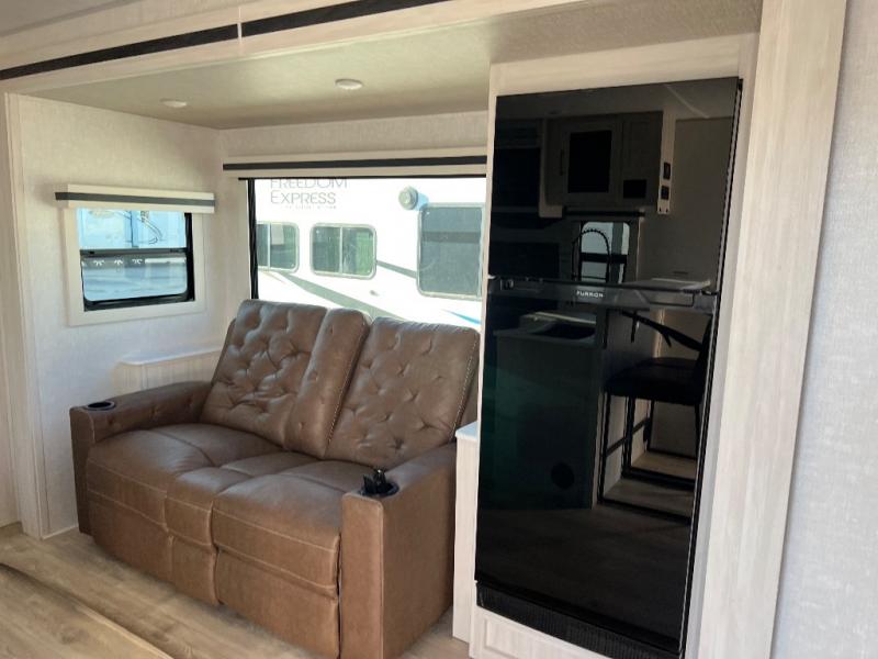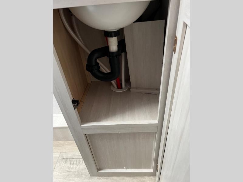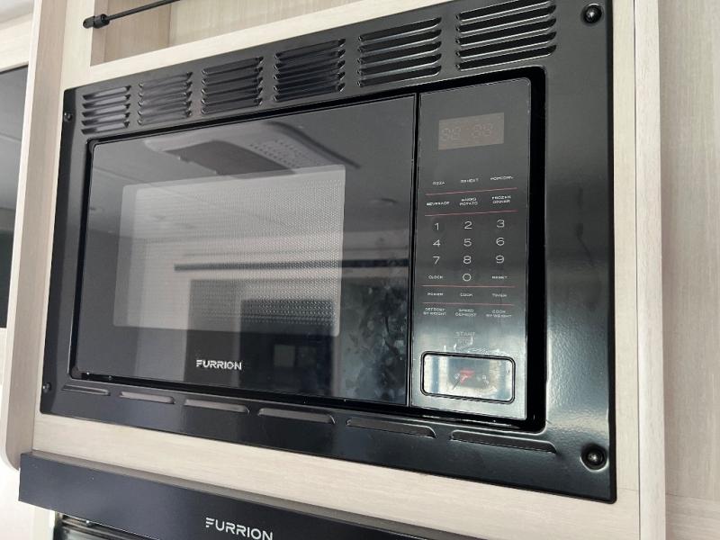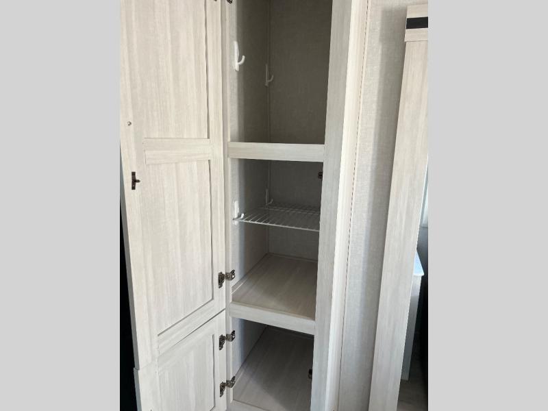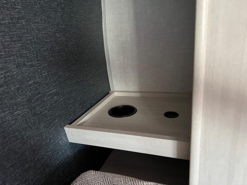 Every trip to the campground will be spent in comfort with this single slide out travel trailer. Once you arrive at the site, remove the kayaks or bikes from the rear storage door, start lunch on the outside kitchen, and put out the 15' power awning with LED lights. The interior includes a booth dinette slide with storage, a bar top with stools, plus an HD TV for movie nights. After a day of fun, head to the front private bedroom for a great night's rest on the queen bed, and you can store your belongings in the dual bedroom wardrobes!