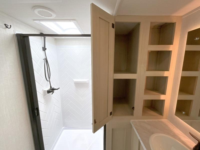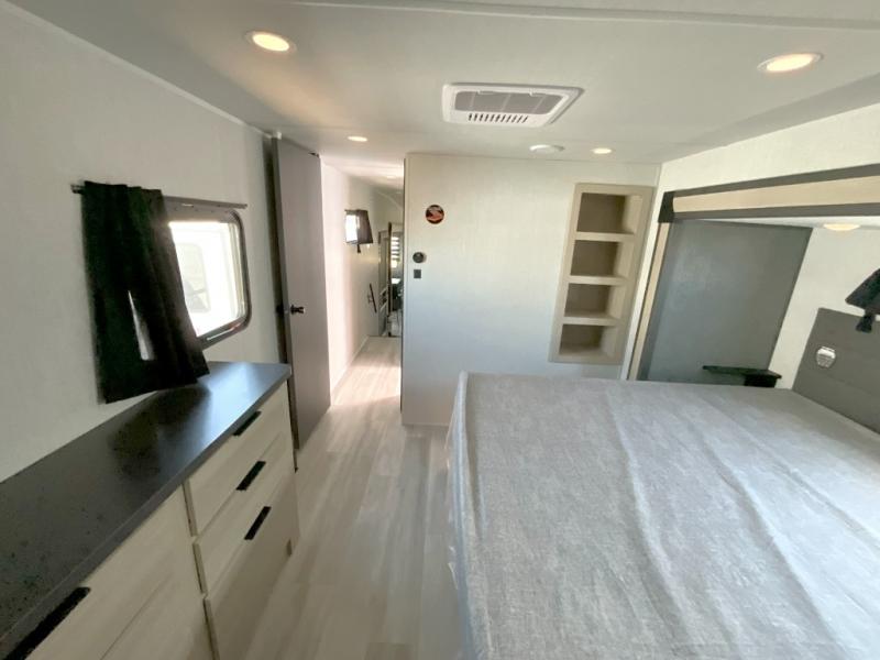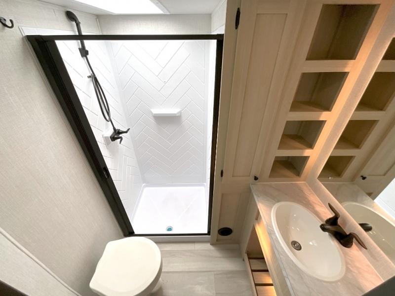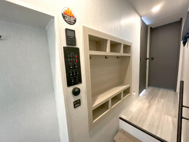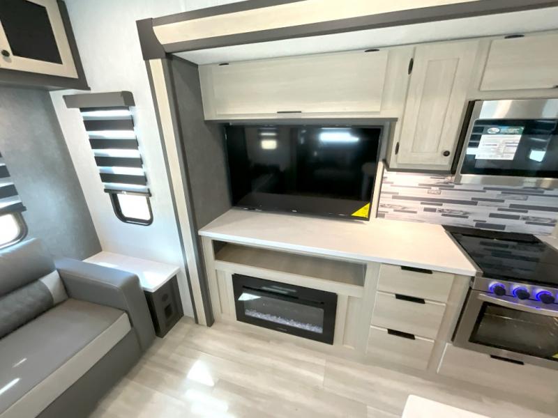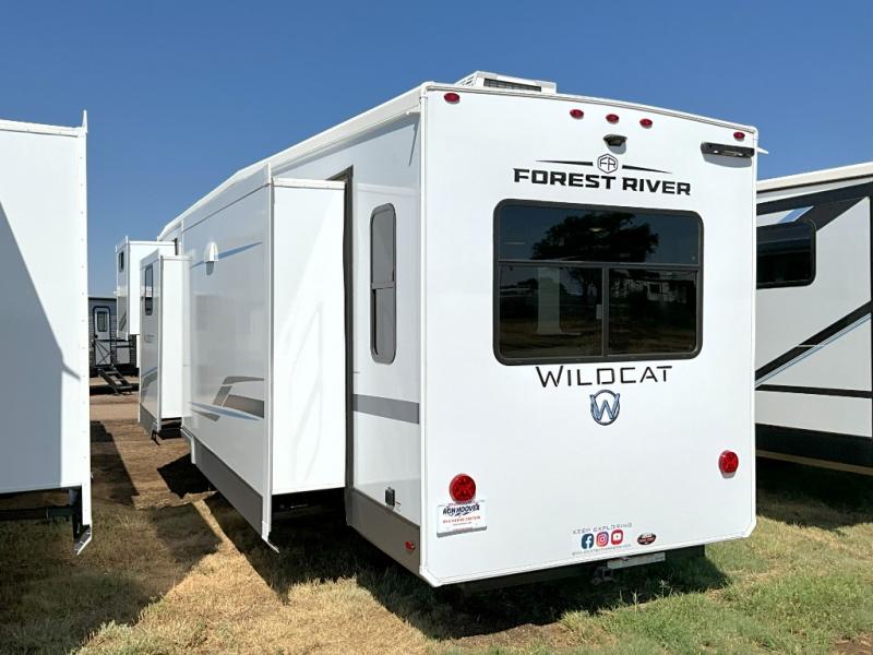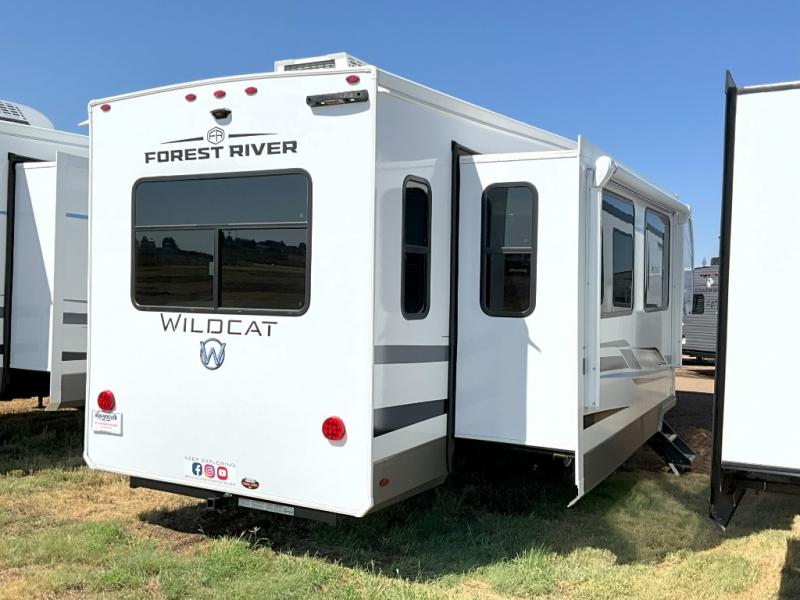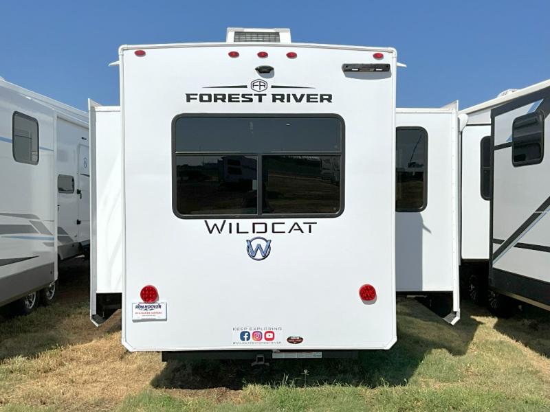 With any Wildcat fifth wheel by Forest River you will enjoy affordable luxury at every turn. These models are constructed with residential fiberglass insulation in the roof and floor, a sectioned ABS plastic underbelly armor, and a vacuum bonded, welded aluminum structure for added strength and durability. You will also find seamless roto-cast holding tanks, an outdoor shower, and 4-point auto leveling for quick and easy setup. Each model includes a best-in-class, high-efficiency 35,000 BTU furnace, along with a 18,000 BTU ducted A/C, with second and third A/C prep, plus an on-demand tankless water heater for added convenience. There are carpet-free living spaces, residential backsplash, motion lighting throughout, and many more comforts!