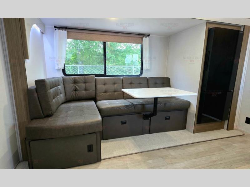 The Wildwood travel trailers are packed with hassle-free camping amenities! There are a variety of floorplans to choose from between three different regions. The heated and enclosed Accessibelly will help protect against the elements and debris during transport, and the exterior retro/metal redesign is sure to be eye-catching! There are stylish roller shades inside, along with updated backsplash, elegant curtain rods and curtains, plus many more interior comforts! Choose a Wildwood travel trailer today for quality and value!