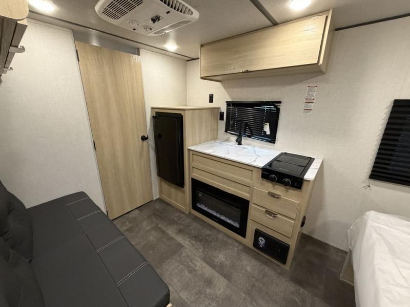 This Limited Edition Wildwood FSX travel trailer is the perfect couples unit! Included you will find a front queen bed with dual wardrobes, and a sofa with overhead storage for seating. Extra thick luxury vinyl flooring is comfortable underfoot and easy to keep clean. The exterior storage has an oversized door for storage so you can fit those bigger items. The Limited Edition Camp Ready package includes a 6 gallon DSI water heater, a powder coated I-beam chassis, manual stabilizer jacks, and more!